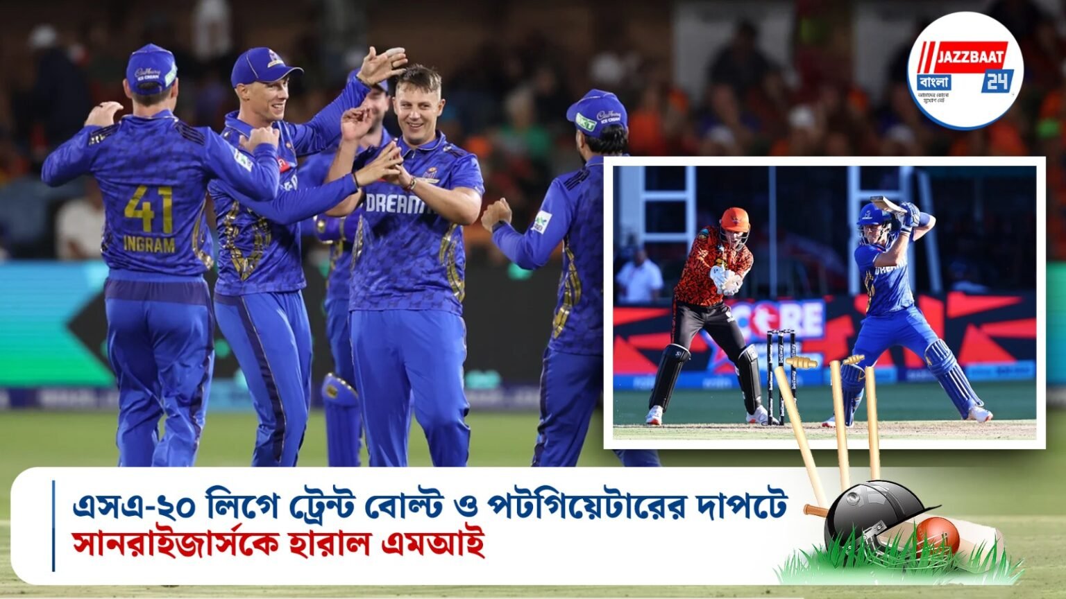 ডিফেন্ডিং চ্যাম্পিয়ন সানরাইজার্স ইস্টার্ন কেপের ব্যাটিং লাইনআপ তাসের ঘরের মতো ভেঙে পড়ে। বোল্ট ও পটগিয়েটারের যৌথ দাপটে তাঁদের পরাজয় অনিবার্য হয়ে ওঠে।