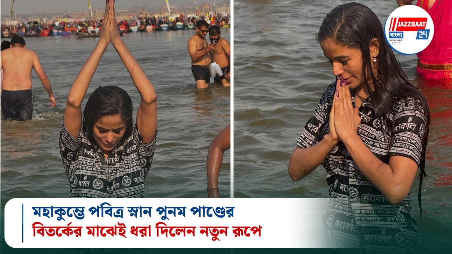 মৌনী অমাবস্যার দিন পুনম পবিত্র ত্রিবেণী সঙ্গমে ডুব দেন। কালো-সাদা কুর্তায় সজ্জিত পুনমের সেই মুহূর্ত ধরা পড়ে ক্যামেরায়। তিনি নিজের সামাজিক মাধ্যমে ছবিগুলি ভাগ করে লিখেছেন, “আমার সব পাপ ধুয়ে গেল।” একটি ছবিতে তাঁকে তিলক পরতে দেখা গেছে, অন্যটিতে পাখিদের জন্য দানা ছড়াতে দেখা যায়। মহাকুম্ভের বিশাল ভিড়, সন্ধ্যারতির দৃশ্য ও স্থানীয় মহিলাদের সঙ্গে নাচার মুহূর্তও ভাগ করে নিয়েছেন তিনি।