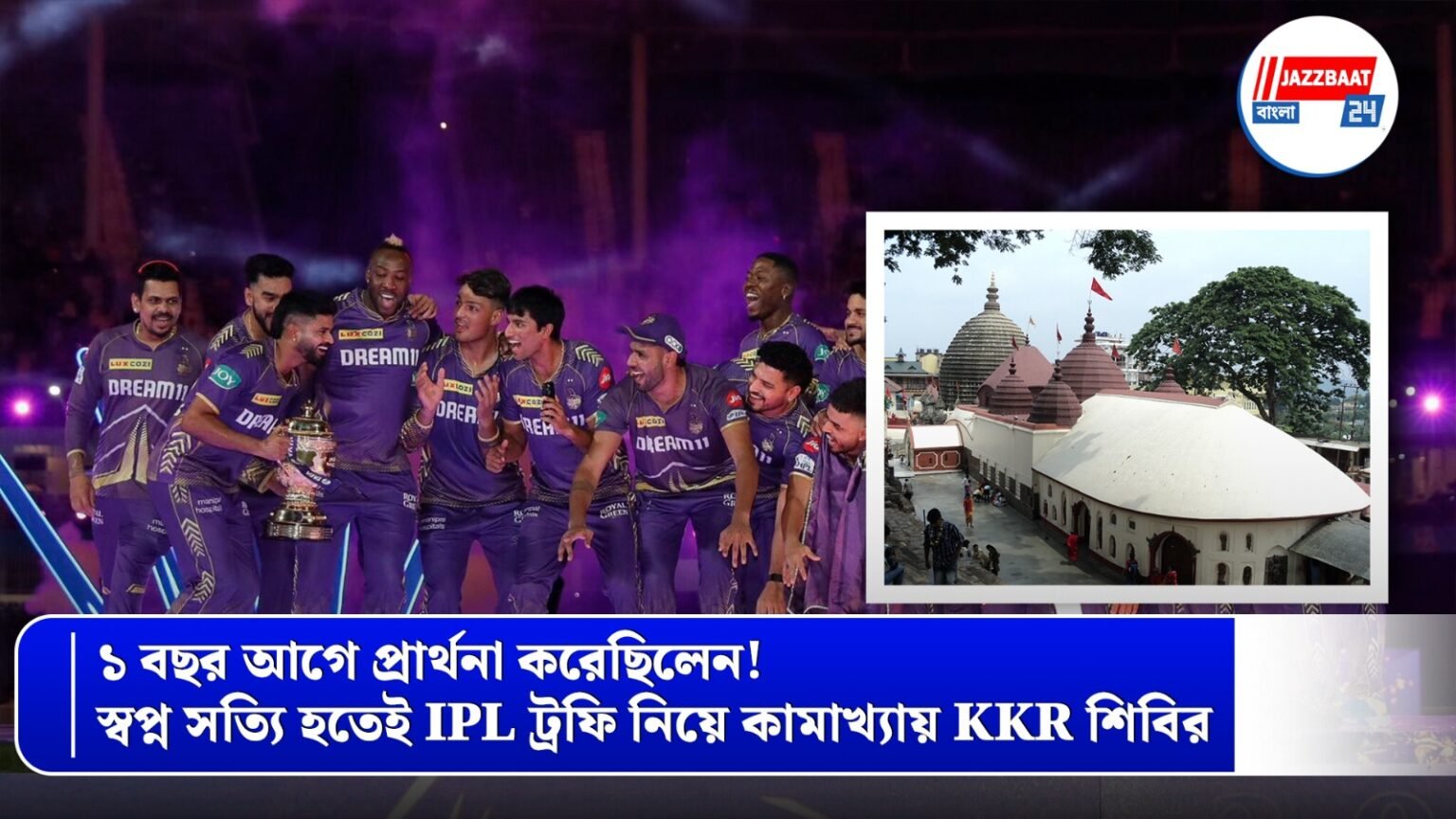 গত বছর গুয়াহাটিতে আইপিএল ম্যাচ খেলতে এসে কামাখ্যা মন্দিরে পুজো দিয়েছিলেন কলকাতা নাইট রাইডার্সের (KKR) কয়েকজন ক্রিকেটার। ঈশ্বরের কাছে চ্যাম্পিয়ন হওয়ার প্রার্থনা করেছিলেন তাঁরা। অবশেষে সেই স্বপ্ন পূরণ হয়েছে। ২০২৪ সালের আইপিএলে দুর্দান্ত পারফরম্যান্স দেখিয়ে ১০ বছর পর তৃতীয়বারের মতো চ্যাম্পিয়ন হয়েছে KKR। এবার সেই কৃতজ্ঞতা জানাতেই ট্রফি হাতে নিয়ে কামাখ্যা মন্দিরে ফিরল নাইটরা।