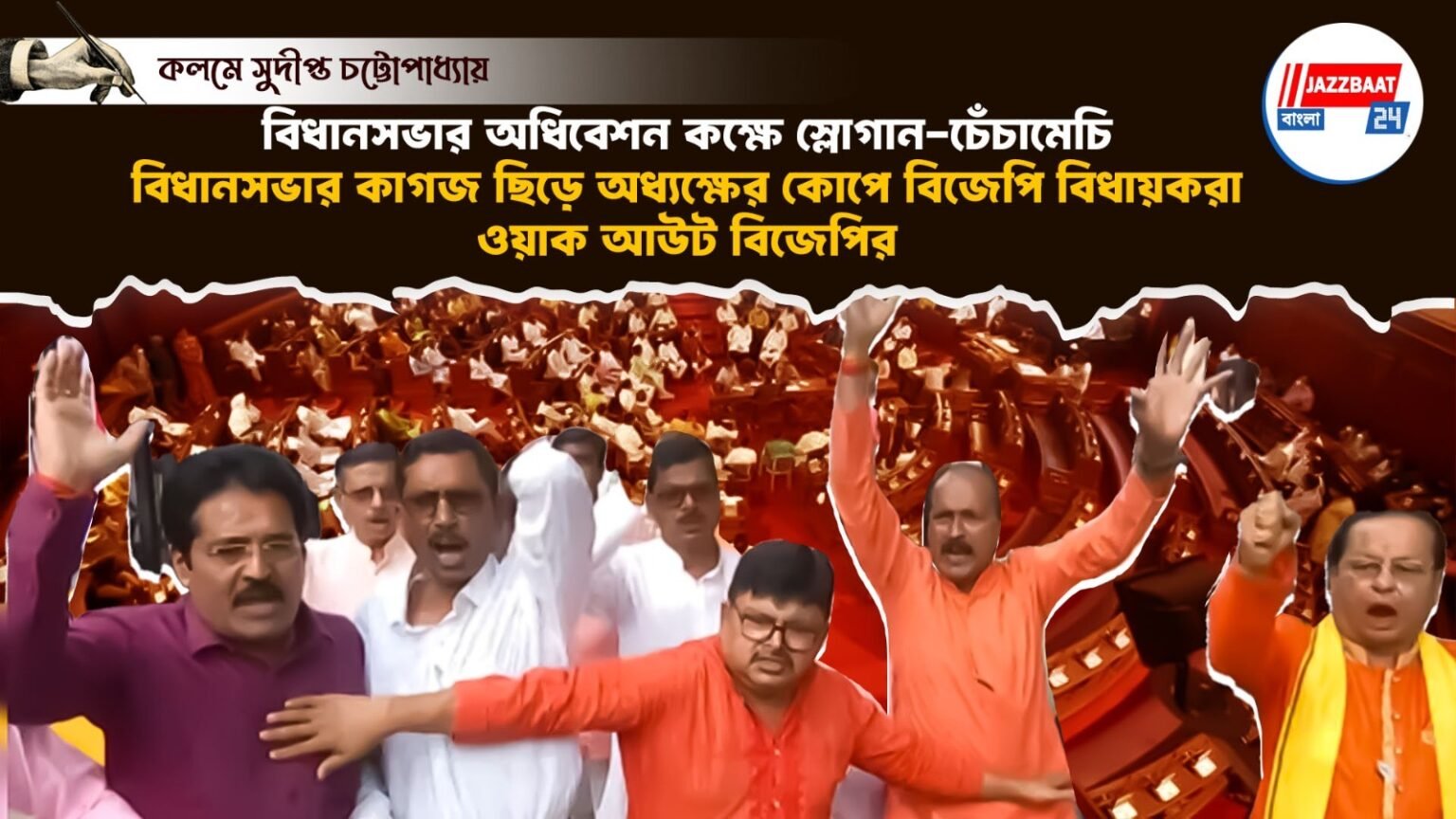 Jazzbaat 24 Bangla > দেশ > বিধানসভার অধিবেশন কক্ষে স্লোগান-চেঁচামেচি, বিধানসভার কাগজ ছিড়ে অধ্যক্ষের কোপে বিজেপি বিধায়করা, ওয়াক আউট বিজেপির