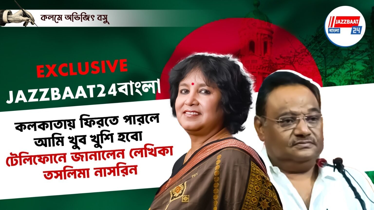 আমি খুব কৃতজ্ঞ সেই দু হাজার সাত সালে আমায় কলকাতা থেকে বের করে দেওয়া হয়। কিন্তু তারপর তো কেউ এইভাবে বলেননি। বিশেষ করে কোনো পলিটিশিয়ান এই প্রসঙ্গে কোনো কিছুই বলেননি মুখ খোলেন নি। কিন্তু তিনি বলেছেন তাঁকে আমি অন্তরের ধন্যবাদ জানাই। আর যদি কলকাতায় ফেরা সম্ভব হয় একজন বাঙালি লেখকের কাছে যে নির্বাসিত যার কোনো ঘর নেই যার পায়ের তলায় মাটি নেই তার জন্য এর থেকে বড় সুখবর তো আর হবে না। আমি ১৯৯৪ সালে সেই ইউরোপে চলে গিয়েছিলাম আসলে যেতে বাধ্য হয়েছিলাম। বাংলাদেশ থেকে বের করে দেওয়া হয়েছিল। শুধু বই লেখার কারণে। তো ওখানে আমার ভালো লাগতো না আমি বাংলায় ফিরতে চাইতাম, দেশে ফিরতে চাইতাম। যেহেতু দেশে ফিরতে দেওয়া হতো না তখন আমি কলকাতায় বইমেলায় আসতে শুরু করলাম। বিভিন্ন সাহিত্য অনুষ্ঠানে আসতে শুরু করলাম। সেই ইউরোপ আমেরিকা থেকে কিন্তু একটা সময় মনে হলো আমি কলকাতায় বাস করিনা কেনো। বাংলার টানে, প্রাণের টানে কলকাতার বাস শুরু করলাম আমি। কিন্তু ওখান থেকে যে আমায় বেরিয়ে যেতে হবে বের করে দেওয়া হবে সেটা বুঝিনি আমি। কিছু বন্ধু সাহিত্যিক লজ্জা দিবস পালন করতেন। কলকাতা থেকে ২২ সে নভেম্বর দু হাজার সাত সালে বের করে দেওয়া হয়েছে। এরপর কয়েক বছর ওরা লজ্জা দিবস পালন করতেন। তারপর এখন আর হয়না সেই দিবস পালন হয়না। কিন্তু বাংলাকে ভালোবেসে বাংলায় থাকতে চেয়েছিলাম একজন বাঙালি লেখকের ঠাঁই হয়না এর চেয়ে বড় দুঃখ আর কি হতে পারে। বিদেশ করে আমি বাংলাকে এত ভালবাসি বিদেশে এত জায়গায় থেকেছি অন্য কোনও ভাষায় আমি লিখিনি আমি বাঙলাতেই লিখেছি। পঞ্চাশটি বেশি বই লেখা হয়েছে এর মধ্য আমার। আরও লিখবো আমি। যতদিন লিখতে পারি লিখবো যতদিন আমি বেঁচে আছি। যদি কলকাতায় থেকে আমি বাংলায় লিখতে পারি এর থেকে ভালো আর কি হতে পারে। যদি বাস করতে না দেওয়া হয় অন্তত বইমেলায় সাহিত্য অনুষ্ঠানে যেতে পারি অন্তত আমার যখন ইচ্ছা হবে তখন যেনো কলকাতায় যেতে পারি আমি। সেটার যদি ব্যবস্থা হয় তাহলেও খুব ভালো হবে। এই যে বইমেলা হয় সেটা যে মিস করি আমি কত । বাংলায় লিখি কিন্তু বাংলায় থাকতে পারি না আমি। এরআগে একটা দুসহবাস নামে একটা মেগা সিরিয়াল ব্যান করে দেওয়া হয়েছিল কয়েক বছর আগে। সেটার জন্য দুঃখ কষ্ট হয়। আমার। অন্তত যদি লেখালেখি দিয়েও বাংলায় আমি থাকতে পারতাম আমার লেখা গল্প দিয়েই মেগা সিরিয়াল হয়ে ছিল। সেটাও বন্ধ করে দেওয়া হয়েছে। আমি কি খুব দোষ করেছি অন্যায় করেছি। আমি শুধু লিখেছি মানবাধিকারের কথা, নারীদের কথা। নারীদের সমান অধিকার এর কথা। সাম্প্রদায়িক সম্প্রীতির কথা। ধর্ম নিরপেক্ষতার কথা। গণতন্ত্রের কথা। এবিষয়ে তো বাংলার কারুর দ্বিমত থাকার কথা নয়।তাহলে কেনো এই বাংলায় আমার থাকা সম্ভব হয় না। 