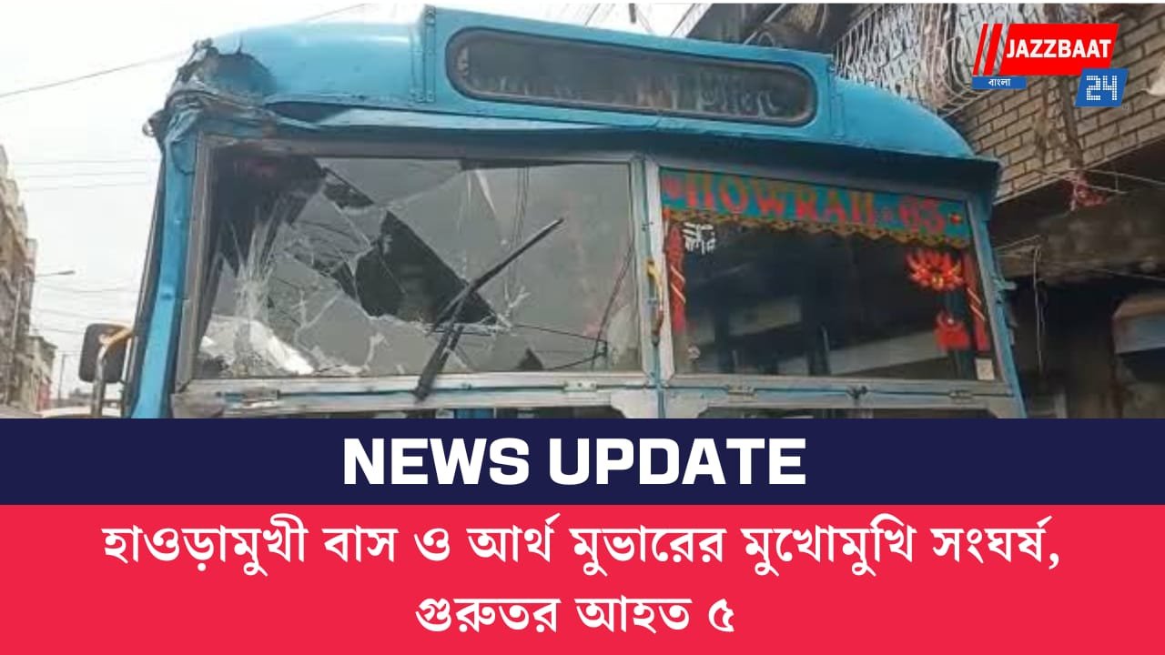 ভয়াবহ দুর্ঘটনার কবলে পড়ল হাওড়ামুখী এল-২৩৮ রুটের একটি যাত্রীবাহী বাস। মঙ্গলবার বিকেল ৩টে নাগাদ মধ্যমগ্রামের দোলতলা পুলিশ লাইনের কাছে একটি আর্থ মুভারের সঙ্গে মুখোমুখি সংঘর্ষ হয় বাসটির। ঘটনাস্থলে ছড়িয়ে পড়ে চরম আতঙ্ক। দুর্ঘটনায় গুরুতর আহত হয়েছেন ৫ জন। তাঁদের মধ্যে ৩ জনের অবস্থা আশঙ্কাজনক বলে জানা গেছে।