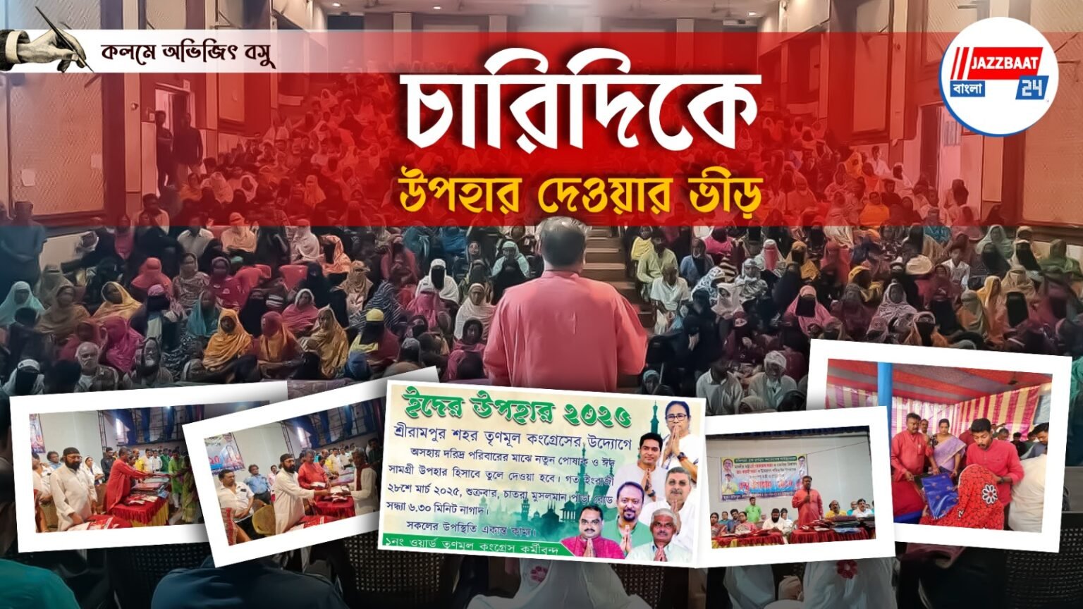 আর খুশীর ঈদের দিন যত এগিয়ে আসছে তত কিন্তু উপহার দেওয়ার ধুম বাড়ছে পাড়ায়, মহল্লায়, জেলায়, মহকুমায়, ব্লকে, অঞ্চলে সর্বত্র। বিশেষ করে সংখ্যালঘু দের এলাকায়। পাড়ার কুঁচো নেতা থেকে শুরু করে লালবাতি মাথায় নিয়ে ঘুরে বেড়ানো গম্ভীর মুখে মন্ত্রী সবাই এখন উপহার দিতেই ব্যস্ত বেশ। আর দরিদ্র পরিবার এই উপহার নতুন শাড়ি, কাপড় পেয়ে খুশি তাঁরাও। আর এই উপহার নিয়ে এখন চারিদিকে লোক দেখানো ধুম পড়ে গেছে। উপহার দিয়ে আর যাই হোক মুখ বন্ধের চেষ্টা আর কি।