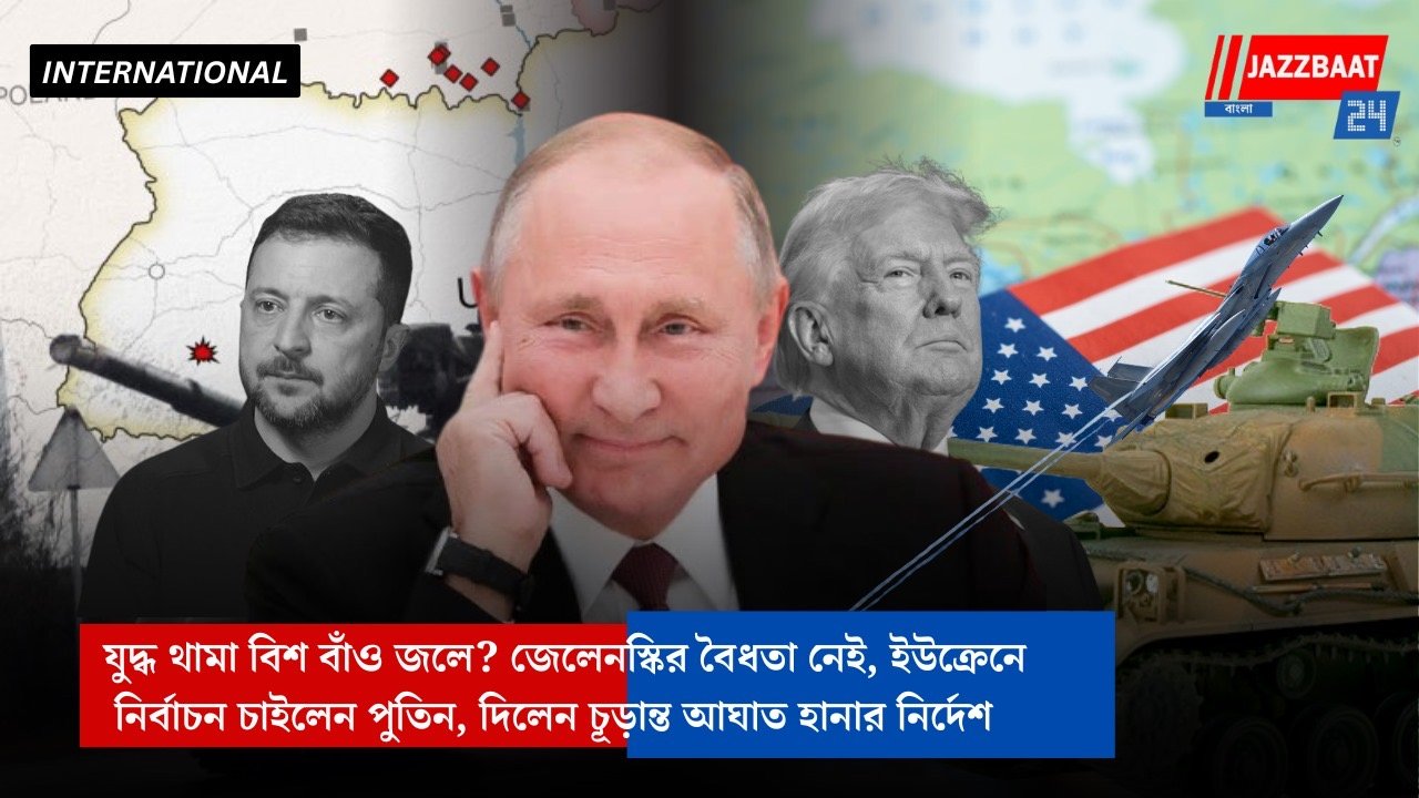 Jazzbaat 24 Bangla > বিদেশ > যুদ্ধ থামা বিশ বাঁও জলে? জেলেনস্কির বৈধতা নেই, ইউক্রেনে নির্বাচন চাইলেন পুতিন, দিলেন চূড়ান্ত আঘাত হানার নির্দেশ