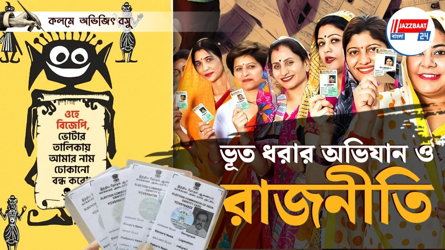 ষমমতার কথায় স্পষ্ট, ভোটার তালিকার উপরেই নির্ভর করছে ভোটের ভবিষ্যৎ। দলের ভবিষ্যৎ। আর যারা এই কাজ করছেন সেই সব কর্মীদের নিজের ভবিষ্যৎ। জয় মা মাটি মানুষের জয়। জয় ভূতেদের জয়। ভূত ধরবেন আর ছবি তুলবেন। আর সেই ছবি ফেসবুকের দেওয়ালে আপলোড করবেন। তাহলেই আপনি নিশ্চিত, আপনার রাজনৈতিক জীবন নিশ্চিত। ভূত ধরে আর দেওয়ালে ছবি সেঁটে দিন আর হাসি মুখে বেঁচে থাকুন আপনি। পলিটিক্স এর প্যাঁচ পয়জারের মাঝে একটু টিক্স করে অন্য ভাবে বেঁচে থাকা। সত্যিই বিচিত্র এই রাজনীতি। কাজ নয়, দলের প্রতি আনুগত্য প্রকাশ করা নয়, বছর বছর রোদে জলে ভিজে পার্টি করা নয়। শুধু ভূত ধরার অভিযান করে ছবি তুলে নিজের রাজনৈতিক অস্তিত্ব টিকিয়ে নিয়ে বেঁচে থাকা। চারিদিকে এখন ভূতেদের জয় জয়কার। আর মা মাটি মানুষের নেত্রীর জয় জয়কার।