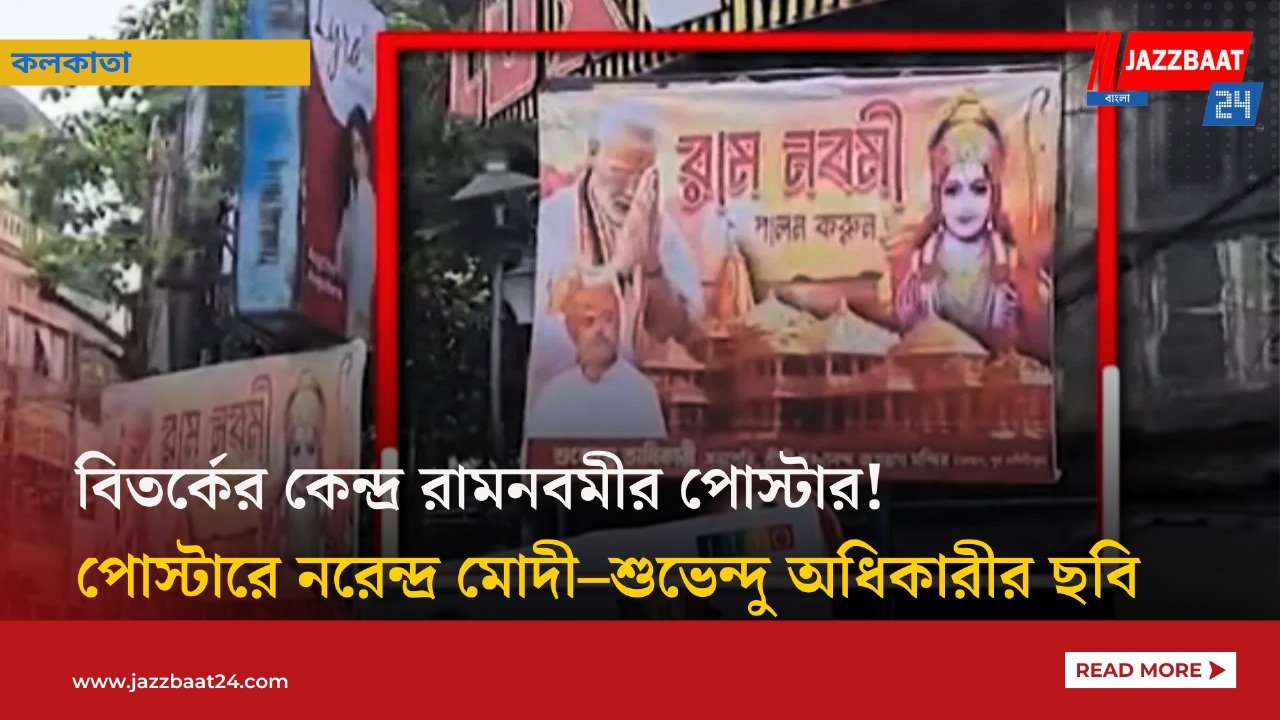 কলকাতা শহর জুড়ে এবার নরেন্দ্র মোদী এবং শুভেন্দু অধিকারীর ছবি দেওয়া পোস্টার। পোস্টারের নিচে লেখা, “রামনবমী পালন করুন”। এই পোস্টারে ছেয়ে গেছে কলকাতা। ‘‌রামনবমী পালন করুন’‌ লেখা পোস্টার দেওয়া হয়েছে কলকাতা শহরের প্রত্যেকটা জায়গায়। সেই নিয়েই শুরু তুমুল বিতর্ক। রামনবমীর পোস্টারে কেন প্রধানমন্ত্রী এবং বিরোধী দলনেতার ছবি? ধর্মীয় উৎসবকে সামনে রেখে রাজনীতি বড়ই বেমানান। বিষয়টিকে সম্পূর্ণ ধর্মীয় মেরুকরণের চেষ্টা বলে দাবি করা হচ্ছে।