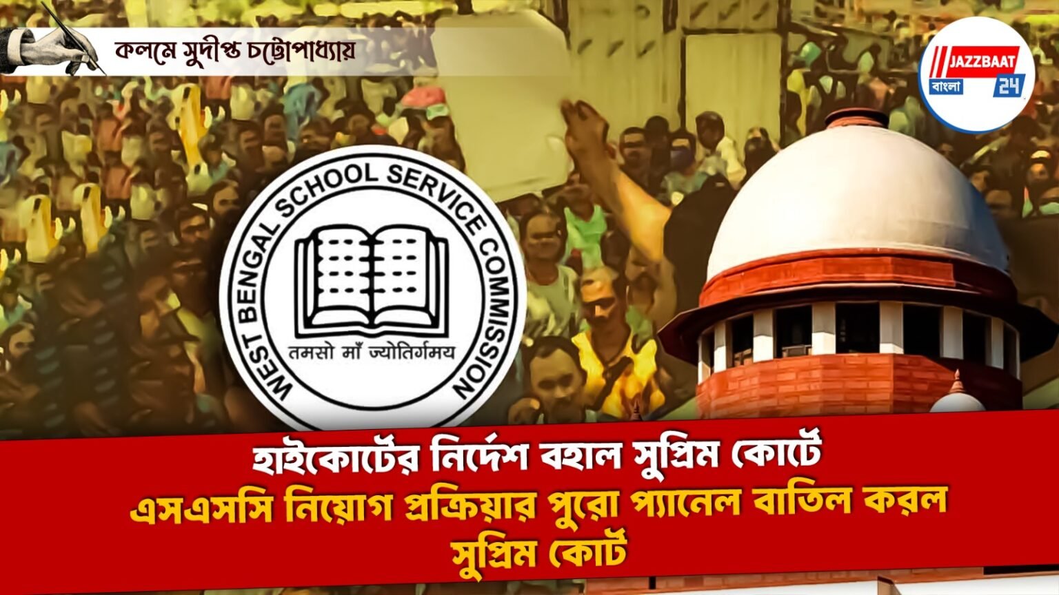কলকাতা হাইকোর্টের ডিভিশন বেঞ্চের রায় বহাল রাখল সুপ্রিম কোর্ট। ২০১৬ সালের এসএসসি নিয়োগ দুর্নীতি মামলায় ২৫,৭৫৩ জনের পুরো নিয়োগ তালিকার প্যানেল বাতিল করল সুপ্রিম কোর্টের প্রধান বিচারপতির ডিভিসন বেঞ্চ। কলকাতা হাইকোর্টে বিচারপতি দেবাংশু বসাকের ডিভিসন বেঞ্চ এই প্যানেল বাতিলের নির্দেশ দিয়েছিল। হাইকোর্টের নির্দেশকে চ্যালেঞ্জ জানিয়ে সুপ্রিম কোর্টের দ্বারস্থ হয় রাজ্য সরকার সহ বঞ্চিত চকৃপ্রর্থিরা। সুপ্রিম কোর্ট জানিয়ে দিল নিয়োগের ক্ষেত্রে ব্যাপক দুর্নীতি ও কারচুপি হয়েছে। এই নিয়োগ প্রক্রিয়ায় কোন বিশ্বাসযোগ্যতা নেই জানিয়ে দিল সুপ্রিম কোর্টের প্রধান বিচারপতি সঞ্জীব খান্নার বেঞ্চ। একইসঙ্গে বেআইনি চাকরি প্রাপকদের বেতন ফেরতেরও নির্দেশ দিয়েছে সুপ্রিম কোর্ট।