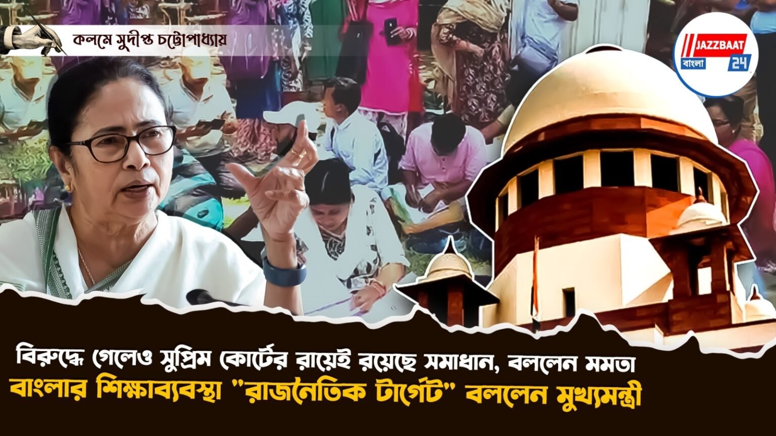 সুপ্রিম কোর্টের রায় হৃদয়বিদারক, তবু হৃদয় দিয়েই আমরা প্রায় ২৬ হাজার এস এস সি চাকরিহারাদের জীবনের সুরক্ষার রাস্তা খুঁজব। ২০১৬ এসএসসি নিয়োগ প্যানেল বাতিল সংক্রান্ত সুপ্রিম কোর্টের নির্দেশে প্রেক্ষিতে ই এভাবেই নিজের বক্তব্য জানালেন বাংলার মুখ্যমন্ত্রী মমতা বন্দ্যোপাধ্যায়। “রায় আমাদের বিরুদ্ধে গেছে ঠিকই কিন্তু সেখানে আমাদের রাস্তাও খুলে দেওয়া আছে। সুপ্রিম কোর্ট যে তিন মাসের সময়সীমা দিয়েছে সেই নির্দিষ্ট সময়সীমার মধ্যেই আমরা সমস্যার সমাধান করব।” মন্তব্য মুখ্যমন্ত্রী মমতা বন্দ্যোপাধ্যায়ের। আদালতের নির্দেশকে শিরোধার্য করেই রাজ্য সরকার পরবর্তী পদক্ষেপ করবে এ কথা জানালেও মানবিক দৃষ্টিভঙ্গিতে এবং একজন দেশবাসী হিসেবে সুপ্রিম কোর্টের এই রায় মেনে নেওয়া যায় না বলেও জানিয়েছেন মুখ্যমন্ত্রী। বঞ্চিত হওয়া শিক্ষক-শিক্ষিকারা দীর্ঘদিন ধরেই মানসিক অবসাদে ভুগছেন। যদি সুপ্রিম কোর্টের এই রায়ের পর কোন ঘটনা ঘটে তাহলে তার দায় কে নেবে? প্রশ্ন তুলেছেন মুখ্যমন্ত্রী। ২০১৬ সালের পর এই সময়কালের মধ্যে তাদেরকেও বাড়ি করেছেন গাড়ি কিনেছেন ব্যাংক থেকে লোন নিয়েছেন বাচ্চাদের উচ্চশিক্ষার ব্যবস্থা করেছেন। বাড়ির বয়স্কদের স্বাস্থ্যের ক্ষেত্রে প্রচুর ব্যয় করেছেন। এই মানুষগুলোর ক্ষেত্রে কোন ঘটনা ঘটলে পরিবারগুলো ধ্বংস হয়ে যাবে। কয়েক লক্ষ মানুষ আদালতের এই রায়ের প্রেক্ষিতে আক্রান্ত হবেন। সার্বিক পরিস্থিতির দায় কে নেবে? সেই প্রশ্নও তুলেছেন মুখ্যমন্ত্রী। পাশাপাশি মুখ্যমন্ত্রীর বরাভয় ” যারা বঞ্চনার শিকার তাদের তাদের পাশে আমরা আছি। তাতে যদি বিজেপি আমাকে জেলে পাঠায় পাঠাক, আমি প্রস্তুত।”
