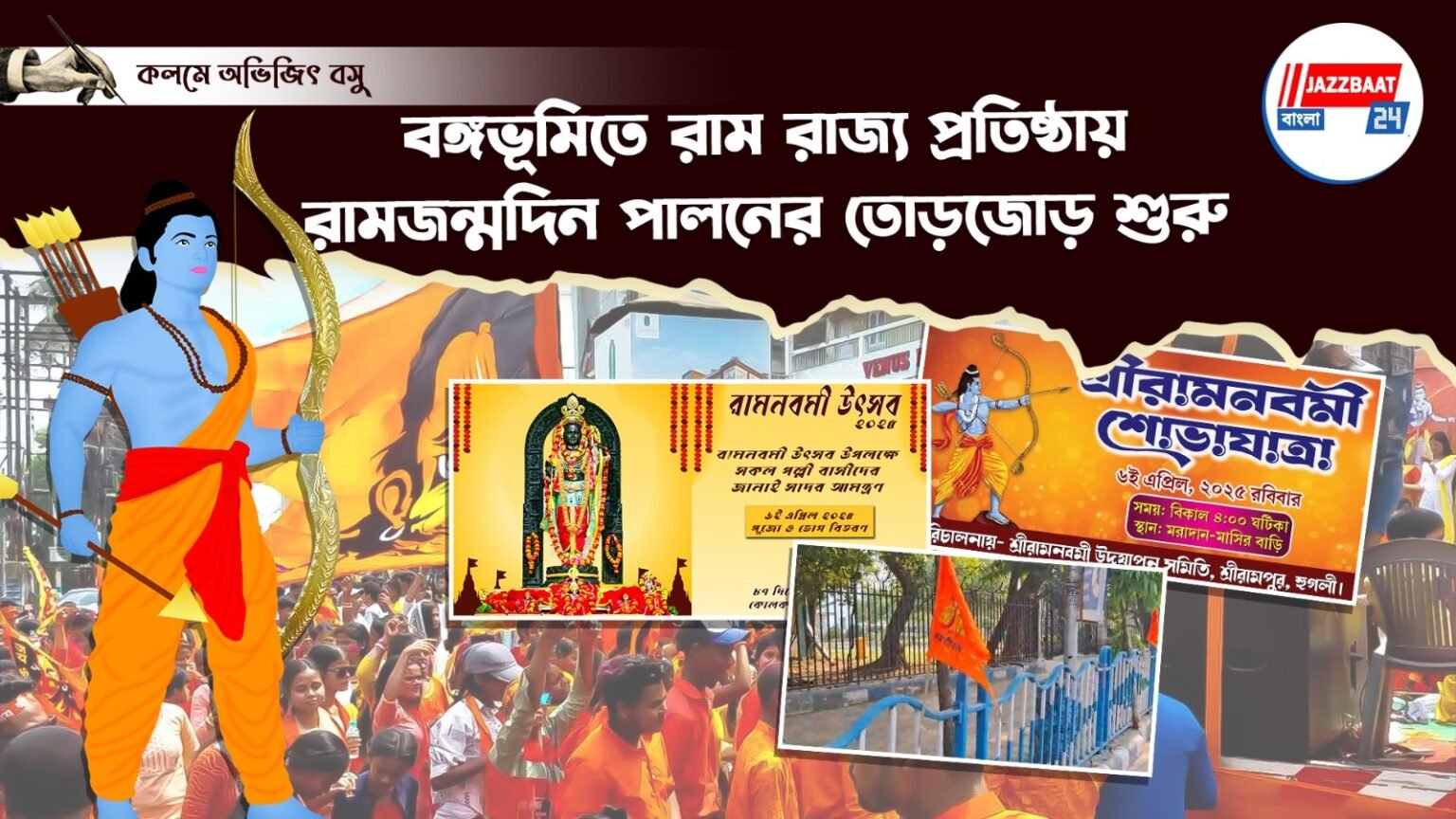 জেলায় জেলায় শুরু হয়েছে তার জোর কদমে প্রস্তুতি। দিকে দিকে ছড়িয়ে পড়েছে রামনবমীর পোস্টার। রাম নবমীর আগের দিন সাত সকালেই কলকাতায় বিধানসভার এলাকায় পতাকা লাগিয়ে দিয়ে আগাম জানান দেওয়া। দিকে দিকে পোস্টারে ফুটে উঠেছে ১৮০০ কোটি টাকা ব্যয়ে রাম মন্দির এর উজ্জ্বল ছবি। আর তার পাশে রামের একনিষ্ঠ সেবক হিসেবে প্রধানমন্ত্রী নরেন্দ্র মোদীর হাসি মুখের ছবি। আসলে বছর ঘুরলেই যে বঙ্গে ভোট উৎসব এর মহড়া শুরু হয়ে যাবে। আর তাই ভোটের আগে যত বেশি করে ধর্মের অনুপ্রবেশ ঘটানো যায় জনগণের মধ্যে।
