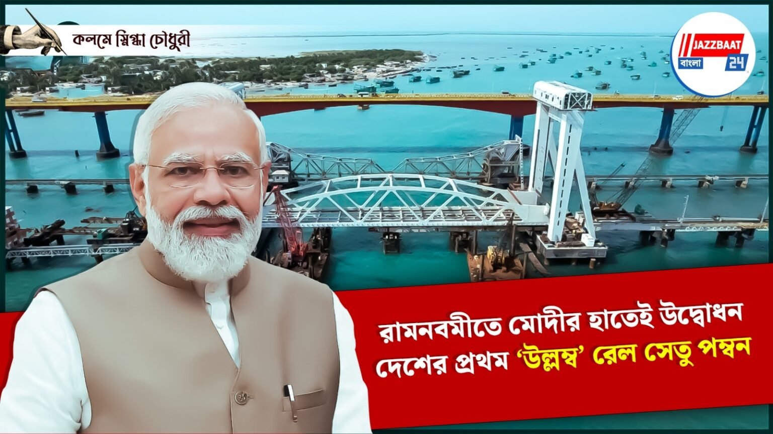 আজ রামনবমীর দিন তামিলনাড়ুর পম্বন চ্যানেলে ইতিহাস গড়ল ভারত। প্রধানমন্ত্রী নরেন্দ্র মোদীর উদ্বোধনে পথ চলা শুরু করল দেশের প্রথম ‘ভার্টিকাল লিফট’ রেল সি-ব্রিজ নতুন পম্বন সেতু। একদিকে রেল, অন্যদিকে সমুদ্রের রাজপথে বিশাল জাহাজ! এই অনন্য সমন্বয়ের এক নিখুঁত নজির স্থাপন করল এই সেতু।