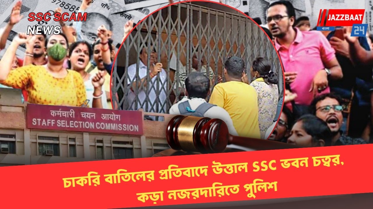 Jazzbaat 24 Bangla > চাকরি > চাকরি বাতিলের প্রতিবাদে উত্তাল SSC ভবন চত্বর, কড়া নজরদারিতে পুলিশ