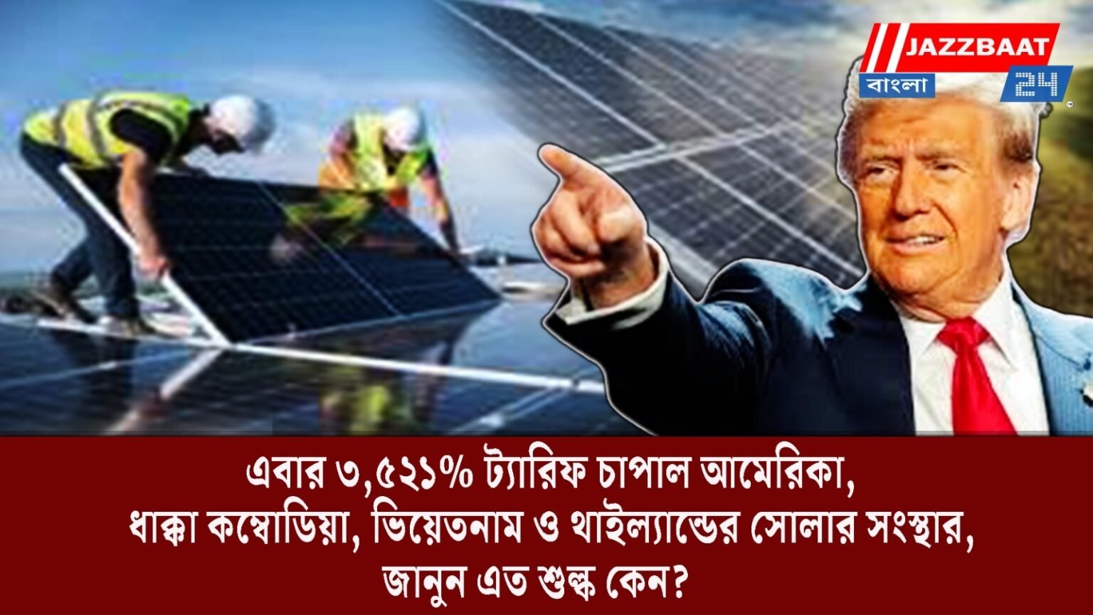 গোটা পৃথিবীজুড়ে ট্রাম্প ট্যারিফের ধাক্কার নানা ক্রিয়া প্রতিক্রিয়ার মধ্যেই ফের বিশাল শুল্ক চাপানোর পথে হাঁটলেন মার্কিন প্রেসিডেন্ট ডোনাল্ড ট্রাম্প। একটি ঘোষণায় মার্কিন যুক্তরাষ্ট্র দক্ষিণ-পূর্ব এশিয়ার দেশগুলো থেকে সৌর পণ্য আমদানিতে নতুন শুল্ক আরোপ করেছে,যার হার দাঁড়িয়েছে সর্বোচ্চ ৩,৫২১% পর্যন্ত। এই নতুন শুল্ক প্রেসিডেন্ট ট্রাম্পের আগে থেকে আরোপিত ১০% শুল্কের অতিরিক্ত হবে।