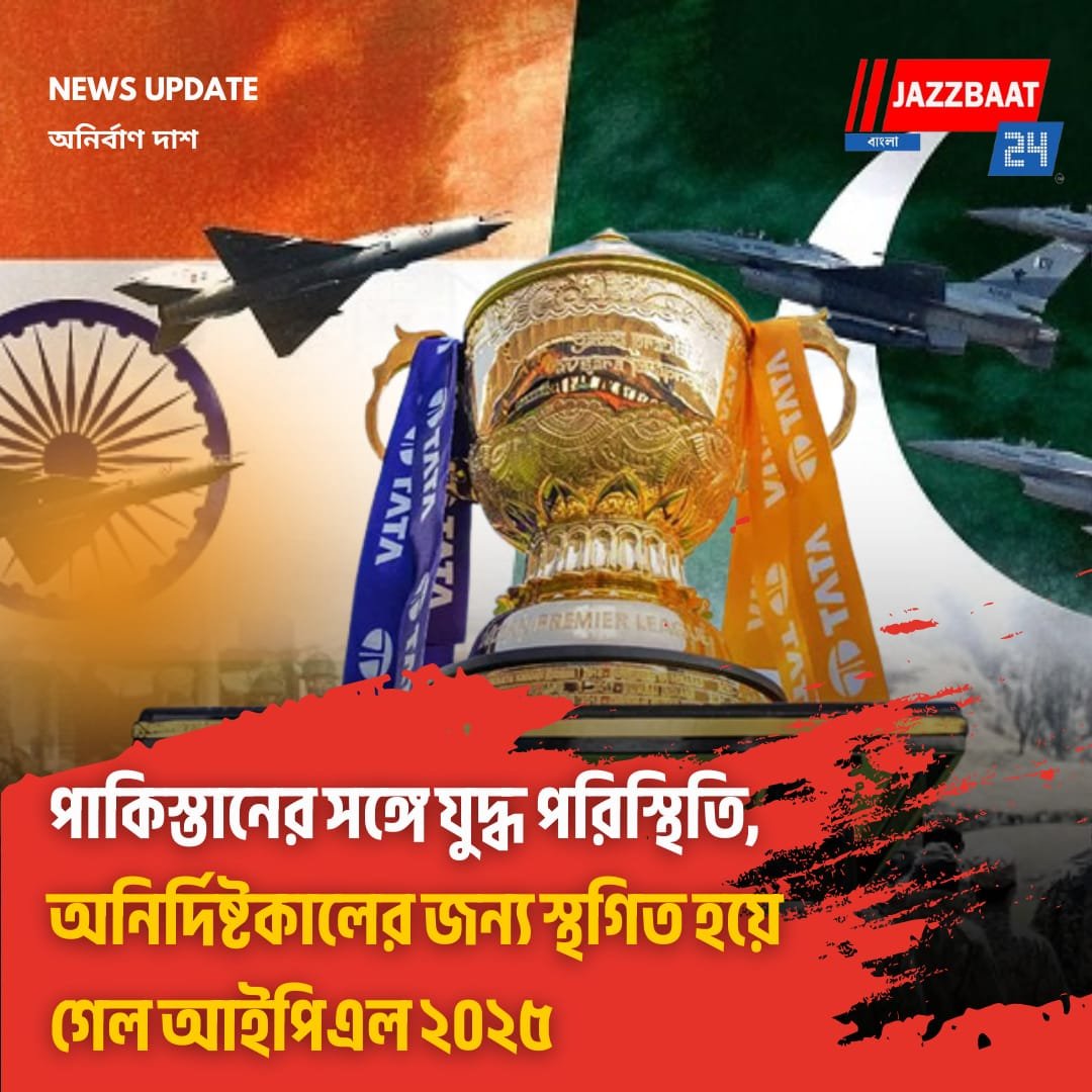 Jazzbaat 24 Bangla > ময়দান > পাকিস্তানের সঙ্গে যুদ্ধ পরিস্থিতি, অনির্দিষ্টকালের জন্য স্থগিত হয়ে গেল আইপিএল ২০২৫