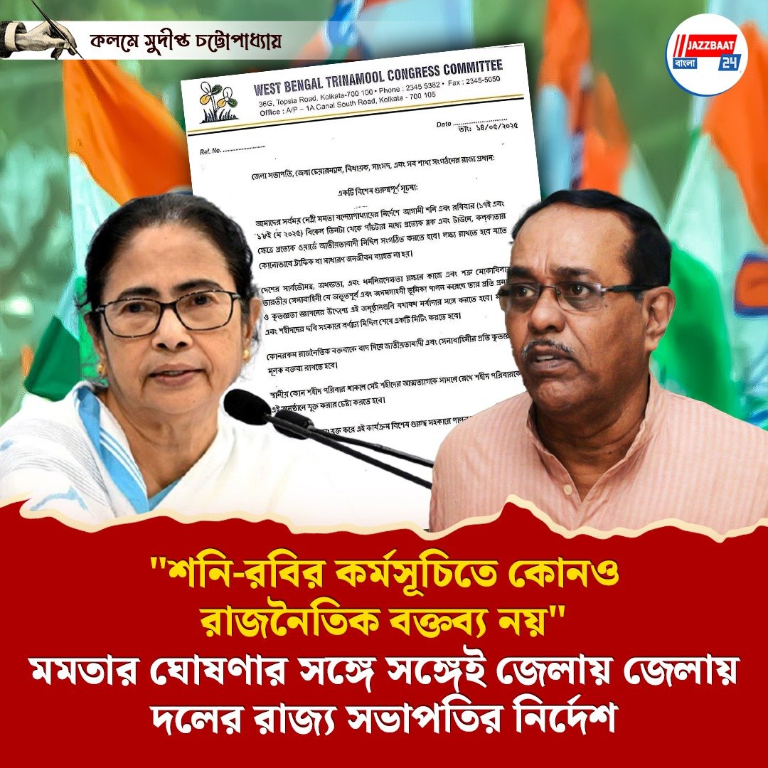 Jazzbaat 24 Bangla > রাজনীতি > “শনি-রবির কর্মসূচিতে কোনও রাজনৈতিক বক্তব্য নয়”