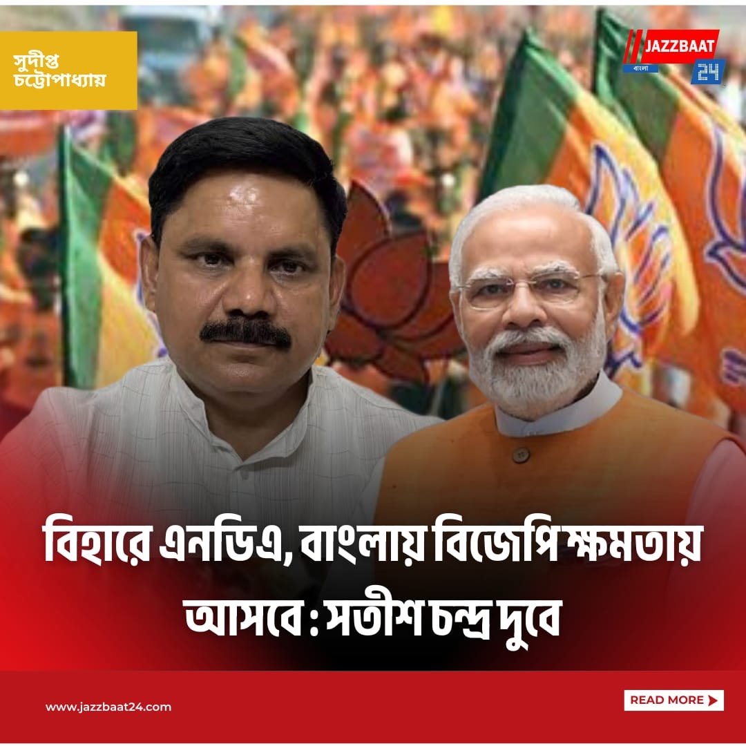 “দিল্লিতে বহু বছর বাদে বিজেপি ক্ষমতায় এসেছে। বিহারেও এনডিএ জোট সরকার হবে। ২০২৬ সালে বাংলা থেকে তৃণমূল বিদায় নেবে। আর নিশ্চিতরূপে বাংলায় বিজেপি ক্ষমতায় আসবে।” বক্তা কেন্দ্রীয় প্রতিমন্ত্রী সতীশ চন্দ্র দুবে।