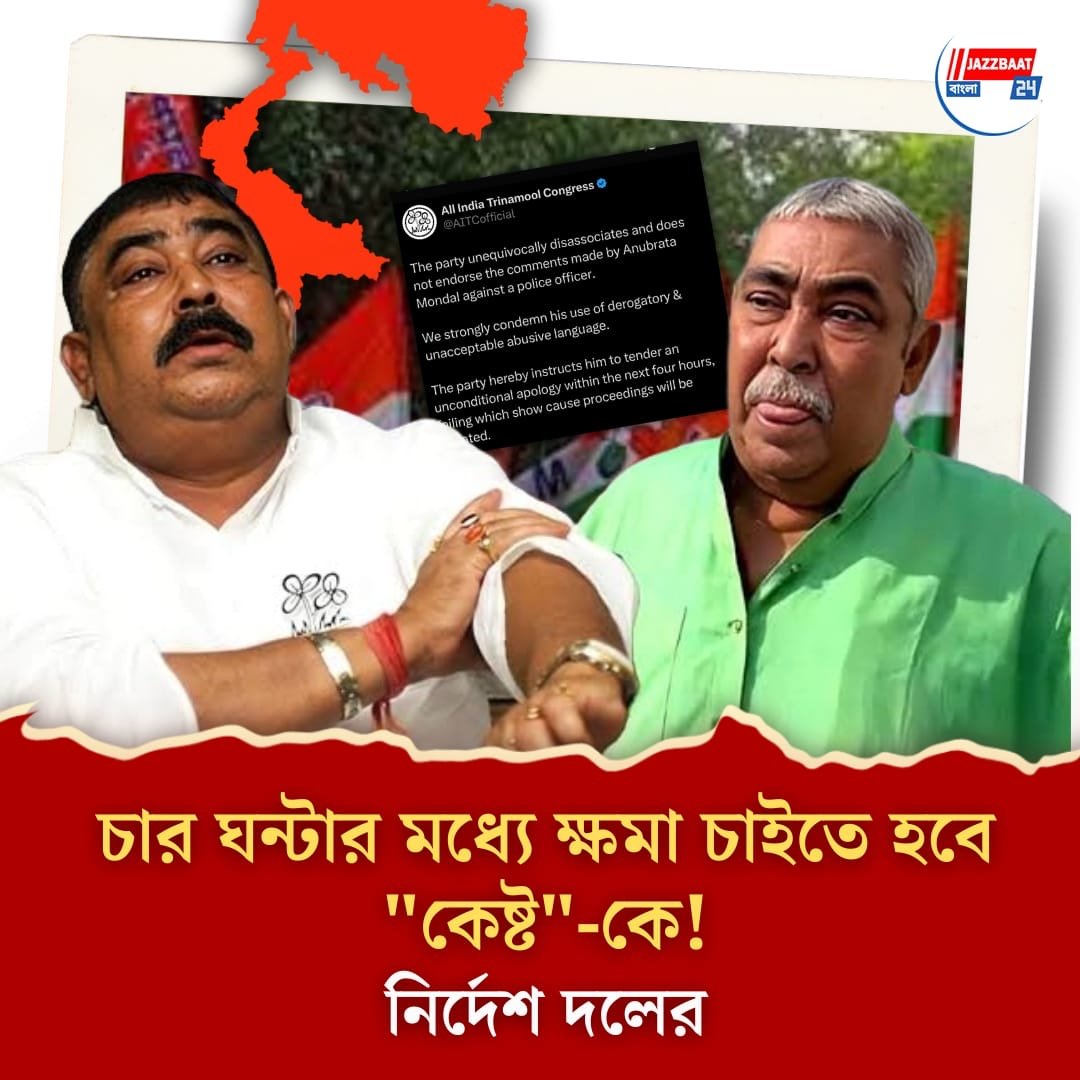 এ যেন উলট পুরাণ। চার ঘণ্টার মধ্যে ক্ষমা চাইতে হবে বীরভূমের “কেষ্ট” তথা অনুব্রত মণ্ডলকে। বোলপুরের আইসি লিটন হালদারকে কদর্য ভাষায় আক্রমণ করেছেন অনুব্রত মণ্ডল। বিষয়টি তর দল তৃণমূল কংগ্রেস একেবারেই ভালোভাবে নেয়নি। তৃণমূল কংগ্রেসের পক্ষ থেকে জানিয়ে দেওয়া হয়েছে, অনুব্রত মণ্ডলকে ঘটনার পরিপ্রেক্ষিতে চার ঘন্টার মধ্যে নিঃশর্ত ক্ষমা চাইতে হবে। যে ধরনের ভাষায় আক্রমণ করেছেন অনুব্রত মণ্ডল তা কোনভাবেই সমর্থন করছে না তৃণমূল কংগ্রেস। ক্ষমা না চাইলে শোকজ করা হবে অনুব্রত মণ্ডলকে।