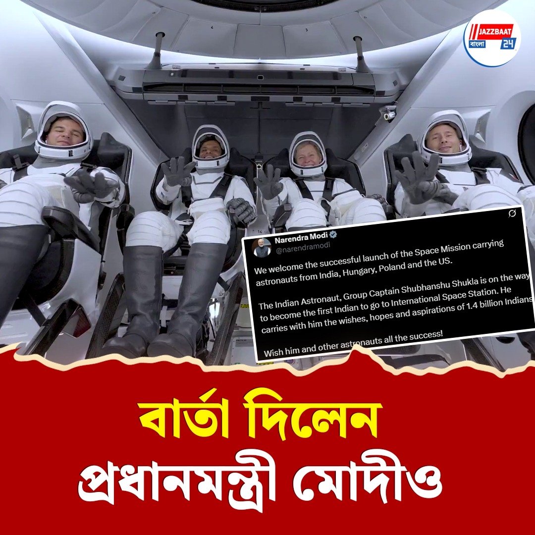 অন্যদিকে এই অভিযানের দিকে কড়া নজর রাখছে ভারতীয় মহাকাশ গবেষণা সংস্থা ইসরো। বার্তা দিয়েছেন প্রধানমন্ত্রী নরেন্দ্র মোদীও। সোশ্যাল মিডিয়ায় শুভাংশু শুক্লাকে শুভেচ্ছা জানিয়ে তিনি লিখছেন, গ্রুপ ক্যাপ্টেন শুভাংশু শুক্লা আন্তর্জাতিক মহাকাশ স্টেশনে যাওয়া প্রথম ভারতীয় হতে চলেছেন। প্রধানমন্ত্রীর কথায়, শুভাংশু তাঁর সঙ্গে ১.৪ বিলিয়ন ভারতীয়ের ইচ্ছা, আশা এবং আকাঙ্ক্ষা বহন করছেন। সোশ্যাল মিডিয়ায় তাঁদের সাফল্যও কামনা করেছেন প্রধানমন্ত্রী মোদী।