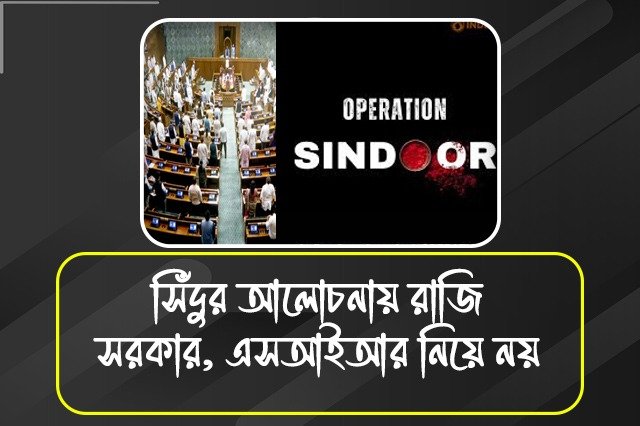 তবে অপারেশন সিন্দুর নিয়ে আলোচনায় রাজি হলেও SIR নিয়ে আলোচনায় এখনও রাজি নয় সরকার পক্ষ। গেরুয়া শিবিরের পক্ষ থেকে ইতিমধ্যেই জানিয়ে দেওয়া হয়েছে যে, বিষয়টি নির্বাচন কমিশনের এক্তিয়ারভুক্ত, পাশাপাশি সুপ্রিম কোর্টে এই নিয়ে মামলা চলছে। তাই সংসদে এই নিয়ে আলোচনা করতে এই মুহূর্তে নারাজ বিজেপি। তাই সোমবার অপারেশন সিন্দুর নিয়ে আলোচনাতে বিরোধী শিবির অংশগ্রহণ করলেও SIR এর প্রতিবাদে সংসদের দুই কক্ষে প্রশ্নোত্তর পর্ব ও জিরো আওয়ার পণ্ড হওয়ার সম্ভাবনা থেকেই যাচ্ছে।