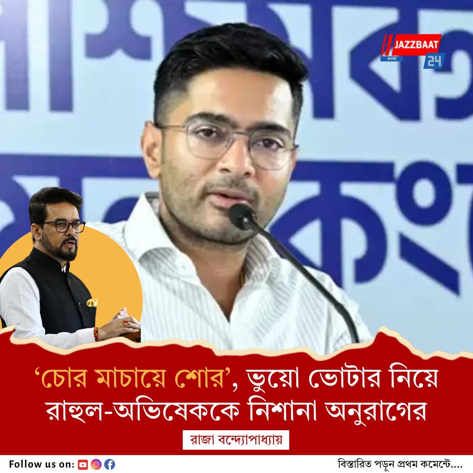 অনুরাগের অভিষেককে নিশানা করার মূল উদ্দেশ্য, এসআইআর নিয়ে অভিষেকের লাগাতার নির্বাচন কমিশন ও বিজেপিকে আক্রমণ। বুধবার বিস্ফোরক অভিষেক। চলতি লোকসভা ভেঙে দিয়ে নতুন করে সাধারণ নির্বাচনের দাবি জানিয়েছেন তিনি। জাতীয় নির্বাচন কমিশনকে লক্ষ্য করে তাঁর অভিযোগ, “আপনারা রাজ্য বেছে নিয়ে এসআইআর করতে পারেন না। গুজরাট, উত্তরপ্রদেশ, মধ্যপ্রদেশের ভোটার তালিকা সঠিক, আর বিহার বা বাংলায় ভুল? বিজেপি জানে বিহারে অবাধে নির্বাচন হলে তারা হেরে যাবে। আপনারা ভোটার তালিকায় বিশেষ নিবিড় সংশোধন করতে চাইলে করুন, কিন্তু তার আগে লোকসভা ভেঙে দিন। তারপর গোটা দেশজুড়ে এসআইআর প্রক্রিয়া চালু করুন।”