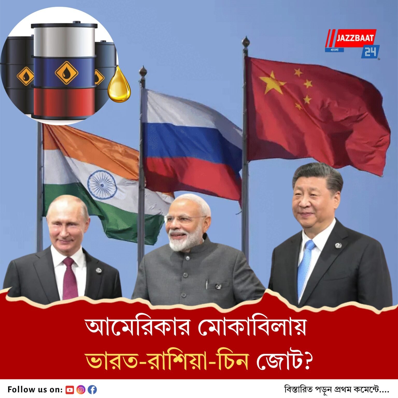 কিন্তু তার থেকেও গুরুত্বপূর্ণ, মার্কিন প্রেসিডেন্ট ডোনাল্ড ট্রাম্পের একতরফা শুল্কনীতি ও ‘বসগিরি’-র বিরুদ্ধে ভারত, রাশিয়া আর চিন, বিশ্বের প্রথম পাঁচ শক্তিধর দেশের মধ্যে তিনটি দেশের একজোট হওয়ার উদ্যোগ। যে উদ্যোগকে “বৃহত্তর ইউরেশিয়ান জোট” হিসেবে আখ্যা দিচ্ছে সংশ্লিষ্ট মহল। যদি তা হয়, তা হলে ট্রাম্পের হাতে হ্যারিকেন ধরাতে খুব বেশি বেগ পেতে হবে না। দাদাগিরি বন্ধ হয়ে যাবে রিপাবলিকান জায়ান্টের।