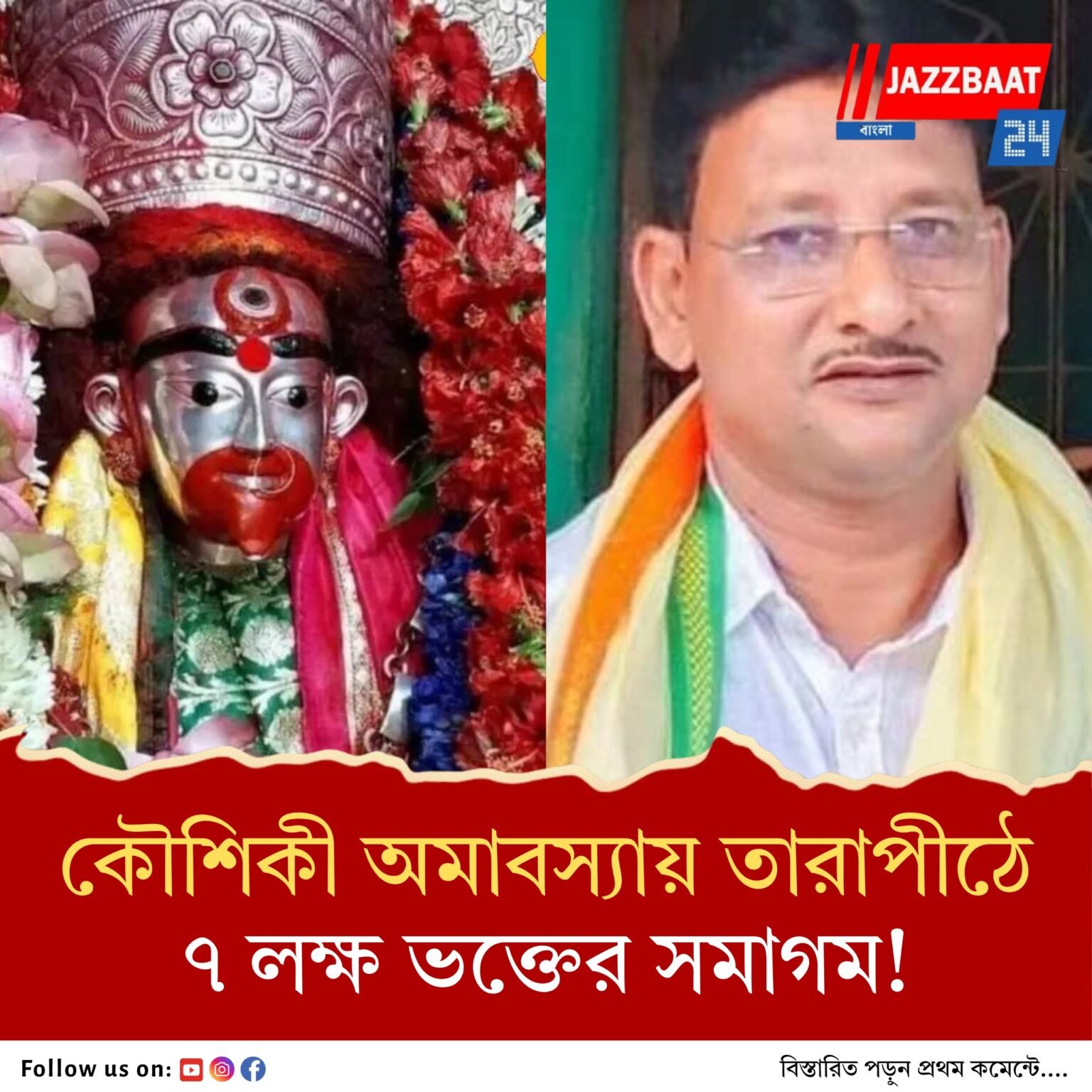 তৃণমূল নেতা কাজল শেখ এই পুণ্য দিনে তারামায়ের দর্শনের জন্য সকলকে আমন্ত্রণ জানিয়েছেন। তিনি জানিয়েছেন, ভক্তদের সুবিধায় যাবতীয় ব্যবস্থা করা হচ্ছে। তিনি বলেন, বীরভূম জেলা পরিষদ, বীরভূম জেলা পুলিশ যাবতীয় ব্যবস্থা করেছে। প্রত্যেক বছর ৫ থেকে ৬ লাখ ভক্তের সমাগম হয়। ২২ অগস্ট শুক্রবার ১১টা ৫৮ মিনিটে শুরু হচ্ছে তিথি। শেষ হচ্ছে ২৩ অগস্ট শনিবার ১১টা ৩৭ মিনিটে। এবছরও ৫-৭ লাখ ভক্তরা আসবেন। নিরাপত্তার যাবতীয় ব্যবস্থা করা হয়েছে। বীরভূম জেলা প্রশাসন তারাপীঠ উন্নয়ন পর্যদের সঙ্গে আলোচনা করেছে। সবার প্রথমে সকলকে আমন্ত্রণ জানাই। ভারতের বাইরে থেকেও যারা আসছেন সকলকে আমন্ত্রণ। আসুন, তারামায়ের দর্শন করুন। কোনও অসুবিধা হবে না। আমরা সকলে সহযোগিতা করব।