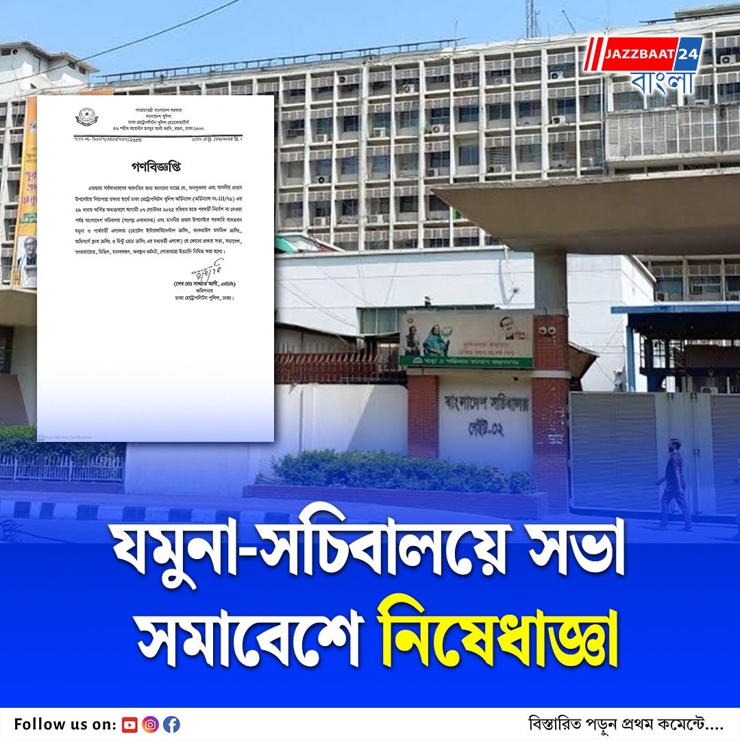 বৃহস্পতিবার ডিএমপি কমিশনার শেখ মোহাম্মদ সাজ্জাত আলির স্বাক্ষরিত এক গণবিজ্ঞপ্তিতে এই নির্দেশনা জানানো হয়। বিজ্ঞপ্তিতে উল্লেখ করা হয়েছে, রাজধানীর জননিরাপত্তা বজায় রাখা, আইনশৃঙ্খলা স্বাভাবিক রাখা এবং চলাচলের পরিবেশ অক্ষুণ্ণ রাখতে এই সিদ্ধান্ত নেওয়া হয়েছে। প্রধান উপদেষ্টার সরকারি বাসভবন যমুনা ও সচিবালয় এলাকাকে দেশের প্রশাসনিক ও রাজনৈতিকভাবে গুরুত্বপূর্ণ কেন্দ্র হিসেবে বিবেচনা করা হয়। ফলে সেখানে যে কোনও ধরনের বড় সমাবেশ বা রাজনৈতিক কর্মসূচি নিরাপত্তার জন্য ঝুঁকিপূর্ণ হতে পারে বলে মনে করছে পুলিশ।