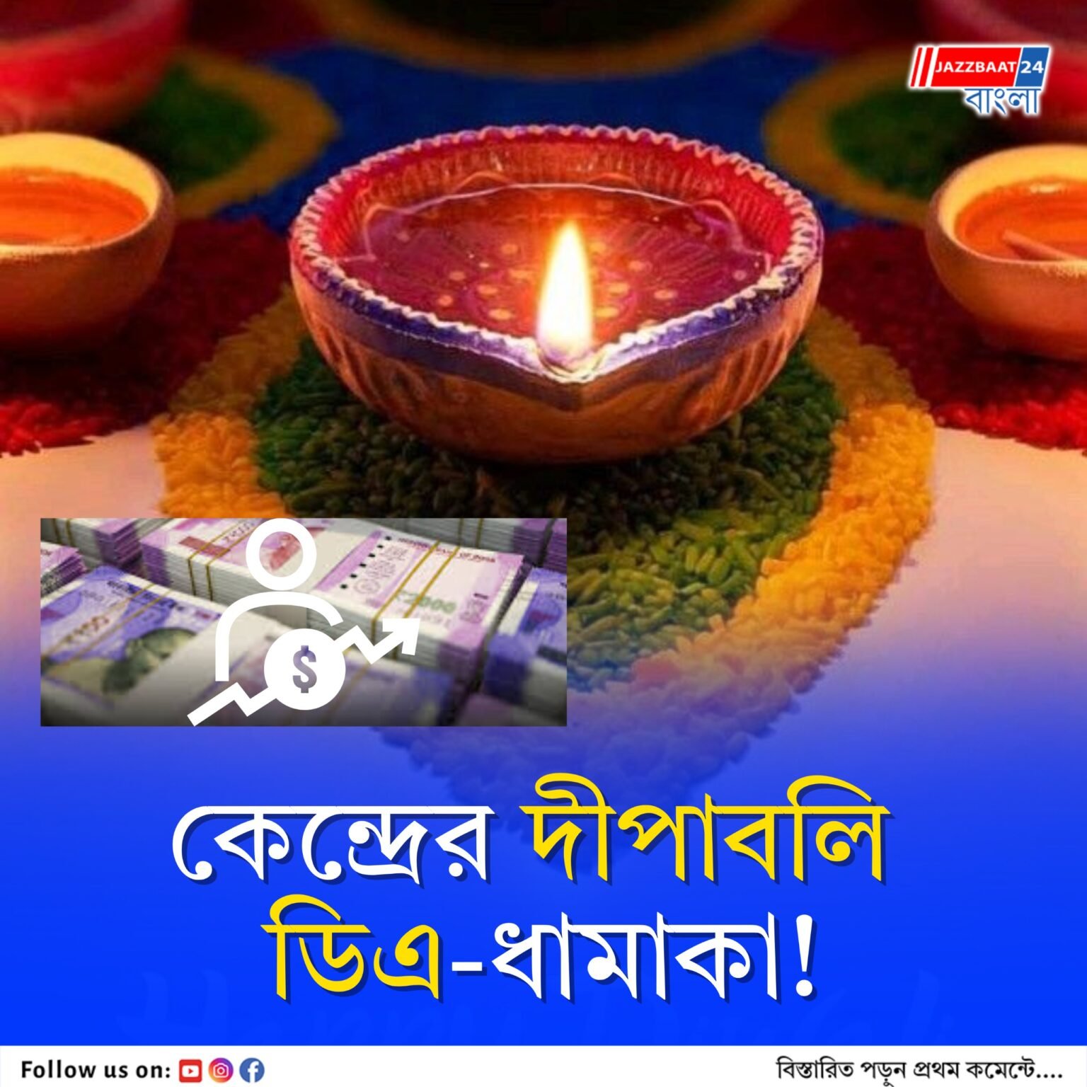 দীপাবলির আগে কেন্দ্রীয় কর্মচারী ও পেনশন প্রাপকদের জন্য আসতে চলেছে খুশির খবর। কেন্দ্রীয় সরকার ৩% মহার্ঘ ভাতা (DA) বৃদ্ধি করতে পারে বলে সূত্রের খবর। এই সিদ্ধান্ত কার্যকর হলে উপকৃত হবেন প্রায় ১ কোটি ২০ লাখ কর্মচারী ও অবসরপ্রাপ্ত কর্মী।