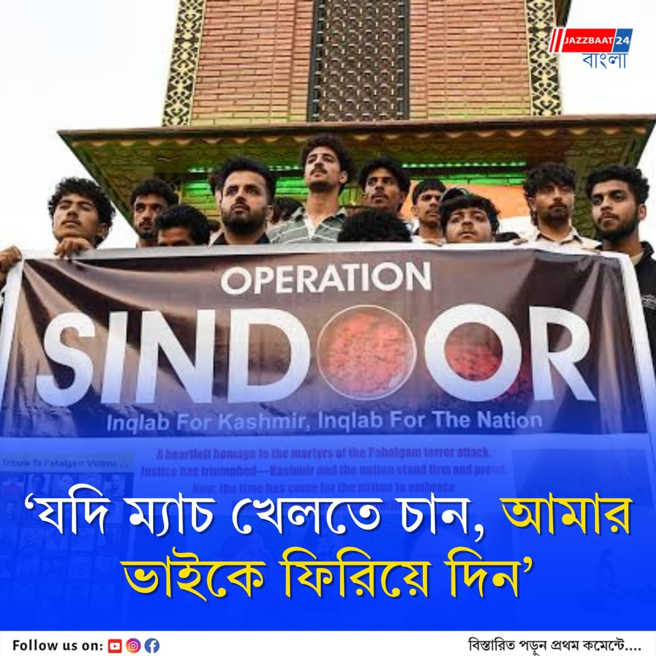 প্রসঙ্গত, চলতি বছরের এপ্রিল মাসে কাশ্মীরের পহেলগামে নৃশংস জঙ্গি হামলায় প্রাণ হারান ২৬ জন নিরীহ নাগরিক। প্রথমে এর দায় স্বীকার করেছিল পাকিস্তান-ভিত্তিক জঙ্গি সংগঠন লস্কর-ই-তৈবার শাখা দ্য রেজিস্ট্যান্স ফ্রন্ট, তবে পরে তারা দায় অস্বীকার করে।