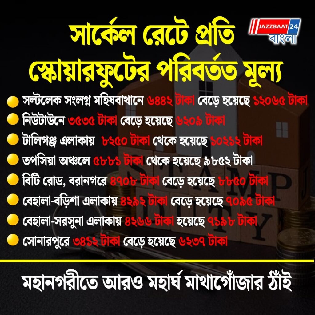 মহানগরীতে কমবেশি সাত বছর পরে সম্পত্তি নিবন্ধীকরণ তথা সার্কেল রেট বাড়ানো হয়েছে। বর্তমানে যার বৃদ্ধির পরিমান অঞ্চল ভিত্তিক ১৫% থেকে ৯০% হারে। প্রসঙ্গত, সার্কেল রেট হল সম্পত্তি নিবন্ধনের জন্য সরকার কর্তৃক নির্ধারিত সর্বনিম্ন সম্পত্তি মূল্য। প্রায় ৭বছর পরে এই সংশোধনীর মূল লক্ষ্য হল সার্কেল এবং বাজার রেটের মধ্যে থাকা ব্যবধান পূরণ করা। রাজ্য অর্থ দফতরের কর্তারা এই পদক্ষেপকে যথাযথ বললেও, কিছুকিছু এলাকায় বাজার মূল্যের চেয়ে বেশি দামের কারণে আবাসনের চাহিদা কমে যাওয়ার আশঙ্কা করছেন ডেভেলপাররা।