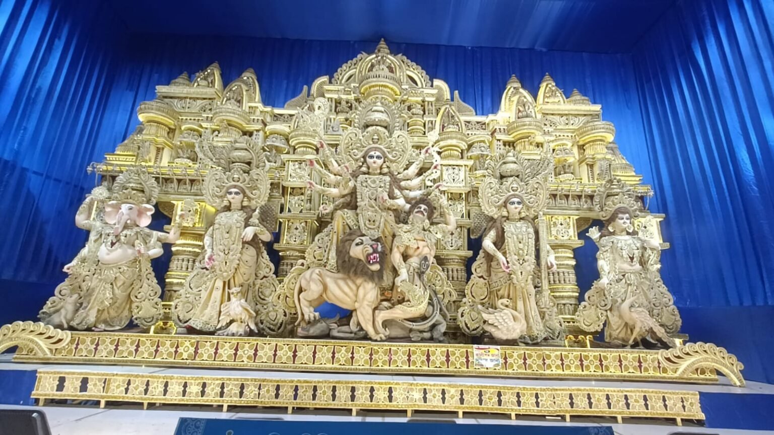 কলকাতাকে এ বছরেও টেক্কা দিতে তৈরি জেলা। ৫০ লক্ষ টাকা ব্যয়ে আমেরিকার স্বামীনারায়ণ মন্দিরের আদলে পুজোমণ্ডপ নদিয়ার কল্যাণীর রথতলা সর্বজনীন দুর্গা উৎসব কমিটির। ৬২ বছরে পা দিল এই পুজো। সনাতনী চিন্তাভাবনা থেকেই তৈরি এই পুজো মন্ডপ। গোটা মণ্ডপে সোনালি রঙের ছোঁয়া। মণ্ডপের ভেতরে রয়েছে বিভিন্ন কারুকাজ যা চোখ ধাঁধিয়ে দেবে দর্শনার্থীদের। শিল্পীদের নিপুণ হাতে সুসজ্জিত এই পুজো মণ্ডপ। দুর্গা প্রতিমাতেও রয়েছে বিশেষ আকর্ষণ। মুখ্যমন্ত্রী মমতা বন্দ্যোপাধ্যায় ভার্চুয়াল উদ্বোধন করে দেওয়ার পর থেকে ঢল নেমেছে দর্শনার্থীদের। এখন থেকেই ভিড় সামাল দিতে হিমশিম খাচ্ছেন পুজো উদ্যোক্তারা। যদিও হাজার হাজার দর্শনার্থীদের পুজো মণ্ডপ দর্শন করার জন্য রয়েছে একাধিক বিধি নিষেধ। বাড়তি ভলেন্টিয়ার থাকছে এই পুজো মণ্ডপে। এছাড়াও কল্যাণীর পুলিশ প্রশাসনের তরফ থেকে করা হয়েছে বিশেষ নিরাপত্তার ব্যবস্থা। অপ্রীতিকর ঘটনা যাতে না ঘটে তার জন্য পুজো মন্ডপের চারপাশে অত্যাধুনিক সিসি ক্যামেরার ব্যবস্থাও রয়েছে। পুজো উদ্যোক্তা জানিয়েছেন, নদিয়ার কল্যাণী এখন শারদীয়া উৎসবে হ্যাপনিং। এখন আর কলকাতা নয়, নদিয়ার কল্যাণীতে দূর দূরান্ত থেকে দর্শনার্থীরা আসছেন ঠাকুর দেখতে। বেশ কয়েক বছর ধরে কলকাতাকে টেক্কা দিচ্ছে নদিয়া। মালদহ, মুশিদাবাদ, বীরভূম সহ বিভিন্ন জেলার মানুষ কাতারে কাতারে আসছেন কল্যাণীর একের পর এক চমকদারি পুজো মণ্ডপ দেখতে।