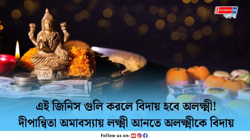 দীপাবলি বা দীপান্বিতা অমাবস্যা মানেই আলো, ঐশ্বর্য ও শুভ শক্তির আহ্বান। এই দিনেই ঘরে ঘরে মহালক্ষ্মীর পূজা হয়, কিন্তু তার আগে অলক্ষ্মীকে বিদায় জানানোর প্রথা চলে আসছে প্রাচীনকাল থেকে। শাস্ত্রমতে অলক্ষ্মী হলেন দেবী লক্ষ্মীর বড় বোন, দুর্ভাগ্য ও অলসতার প্রতীক। সমুদ্রমন্থন কালে প্রথমে তাঁরই আবির্ভাব ঘটে, পরে দেবী লক্ষ্মীর। অলক্ষ্মীর বাহন গাধা, রং কৃষ্ণবর্ণ, এবং তিনি লোহার গয়না ধারণ করেন। এই সবই তামসিকতার প্রতীক বলে ধরা হয়।