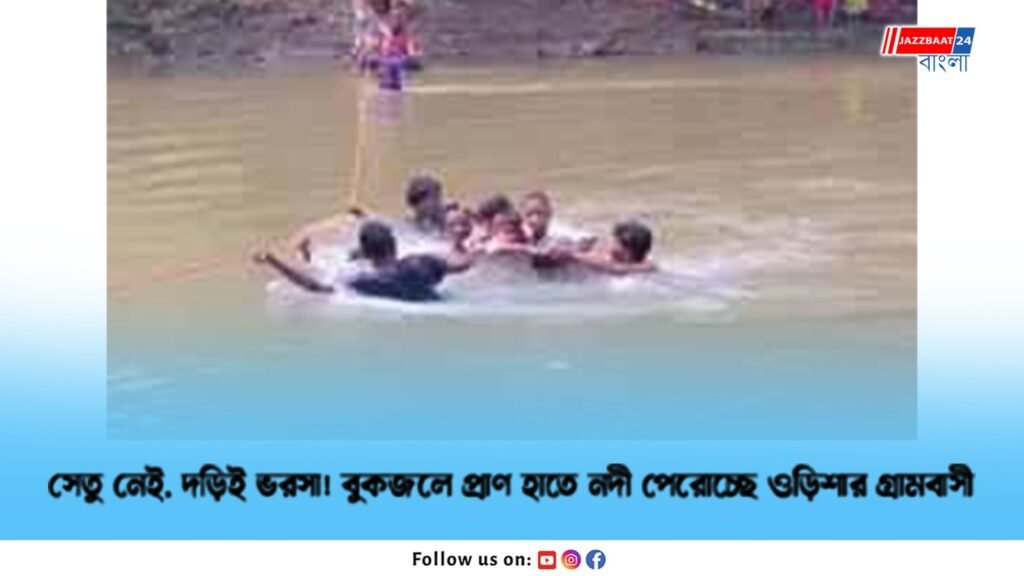 ওড়িশার কন্ধামাল জেলার কাদামাহা গ্রামের মানুষের জীবনের সঙ্গে লেগে আছে এক ভয়াবহ বাস্তবতা একটা সরু দড়ি, বুকসমান জল আর প্রতিদিনের ঝুঁকি। বুঢ়া নদীর ওপারে যেতে গ্রামের প্রায় ১০০টি পরিবারকে দিনরাত এই ঝুঁকিপূর্ণ পথেই যাতায়াত করতে হয়। কারণ, এখনও পর্যন্ত সেখানে কোনও সেতু তৈরি হয়নি।