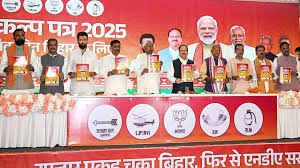 বিহার বিধানসভা নির্বাচনের আগে ভোটের ময়দানে প্রতিশ্রুতির ঝড় তুলল এনডিএ জোট। শুক্রবার পাটনায় জেপি নাড্ডা, নীতীশ কুমার, চিরাগ পাসোয়ান ও জিতন রাম মাঁজিদের উপস্থিতিতে প্রকাশ করা হল এনডিএ-র নির্বাচনী ইসতেহার ‘সংকল্প পত্র’। এই ঘোষণায় জোট প্রতিশ্রুতি দিয়েছে আগামী পাঁচ বছরে এক কোটি চাকরির সুযোগ সৃষ্টির, দক্ষতা উন্নয়নের জন্য প্রতিটি জেলায় মেগা স্কিল সেন্টার গঠনের এবং বিহারকে গ্লোবাল স্কিল হাব হিসেবে গড়ে তোলার।