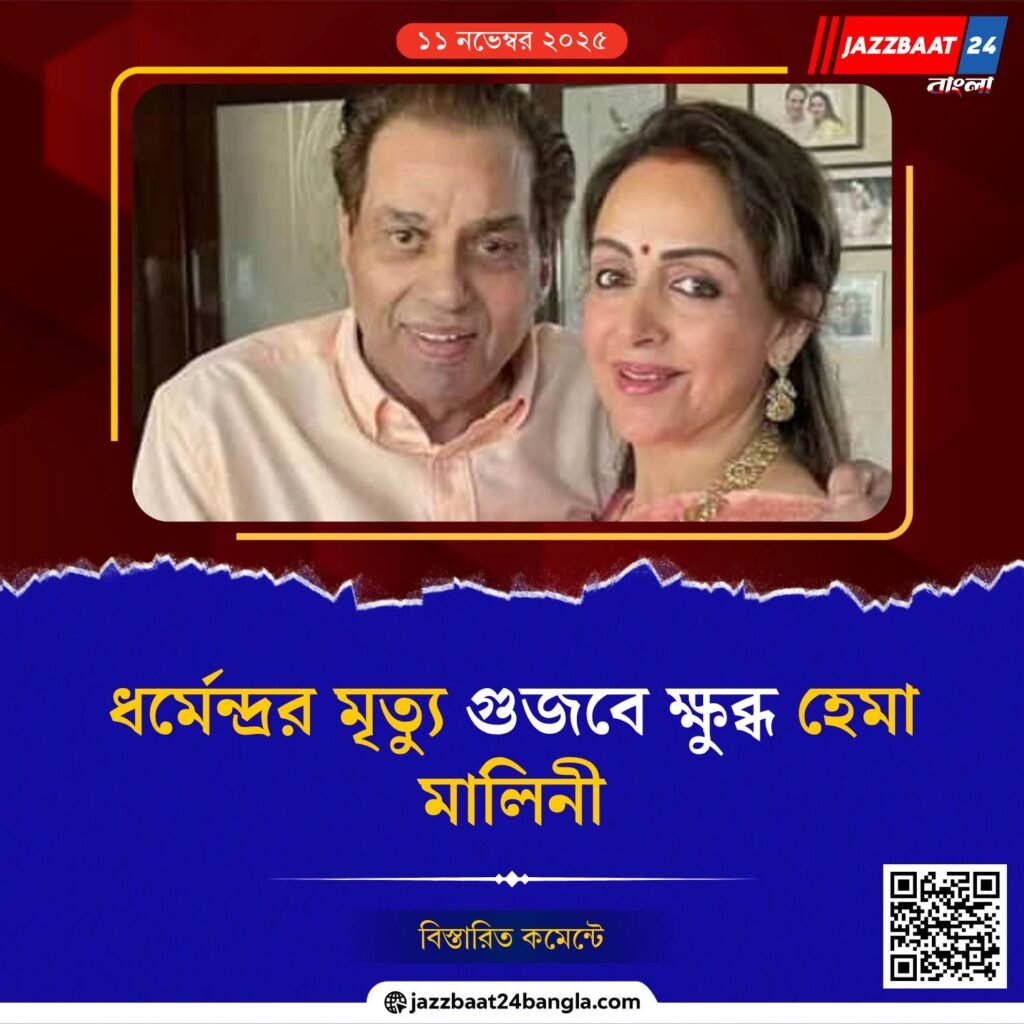 Jazzbaat 24 Bangla > Blog > বিনোদন > ধর্মেন্দ্রর মৃত্যু গুজবে ক্ষুব্ধ হেমা মালিনী