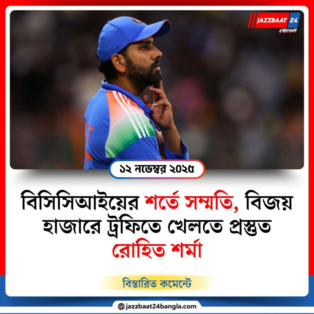 ভারতীয় ক্রিকেটের অন্যতম সেরা তারকা রোহিত শর্মা আসন্ন বিজয় হাজারে ট্রফিতে খেলার জন্য মুম্বই ক্রিকেট অ্যাসোসিয়েশনকে (MCA) তাঁর উপলব্ধতার কথা জানিয়েছেন। ভারতীয় ক্রিকেট কন্ট্রোল বোর্ডের (BCCI) কড়া নির্দেশিকার পরই এই সিদ্ধান্ত নিলেন তিনি।