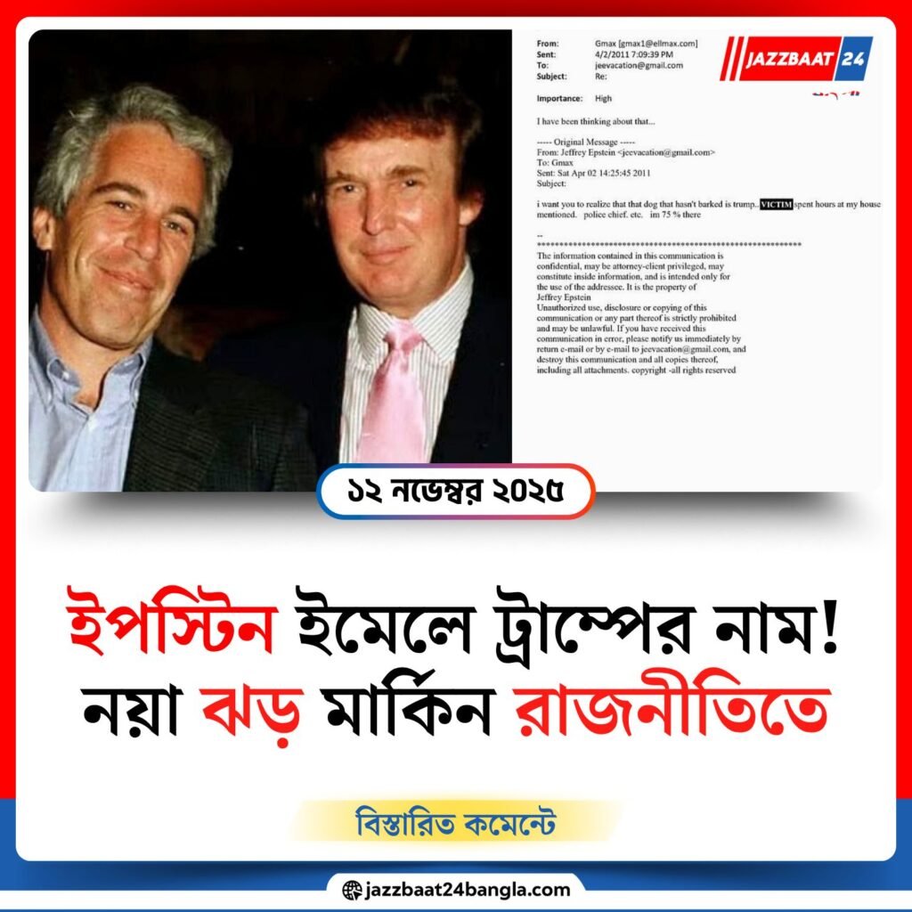 এই ঘটনা মার্কিন রাজনীতিতে ফের একবার আলোচনার কেন্দ্রবিন্দুতে এনেছে কুখ্যাত “ইপস্টিন ফাইলস”–কে, যা আগামী দিনে ট্রাম্প প্রশাসনের ওপর আরও চাপ বাড়াতে পারে বলে রাজনৈতিক বিশ্লেষকদের ধারণা।
