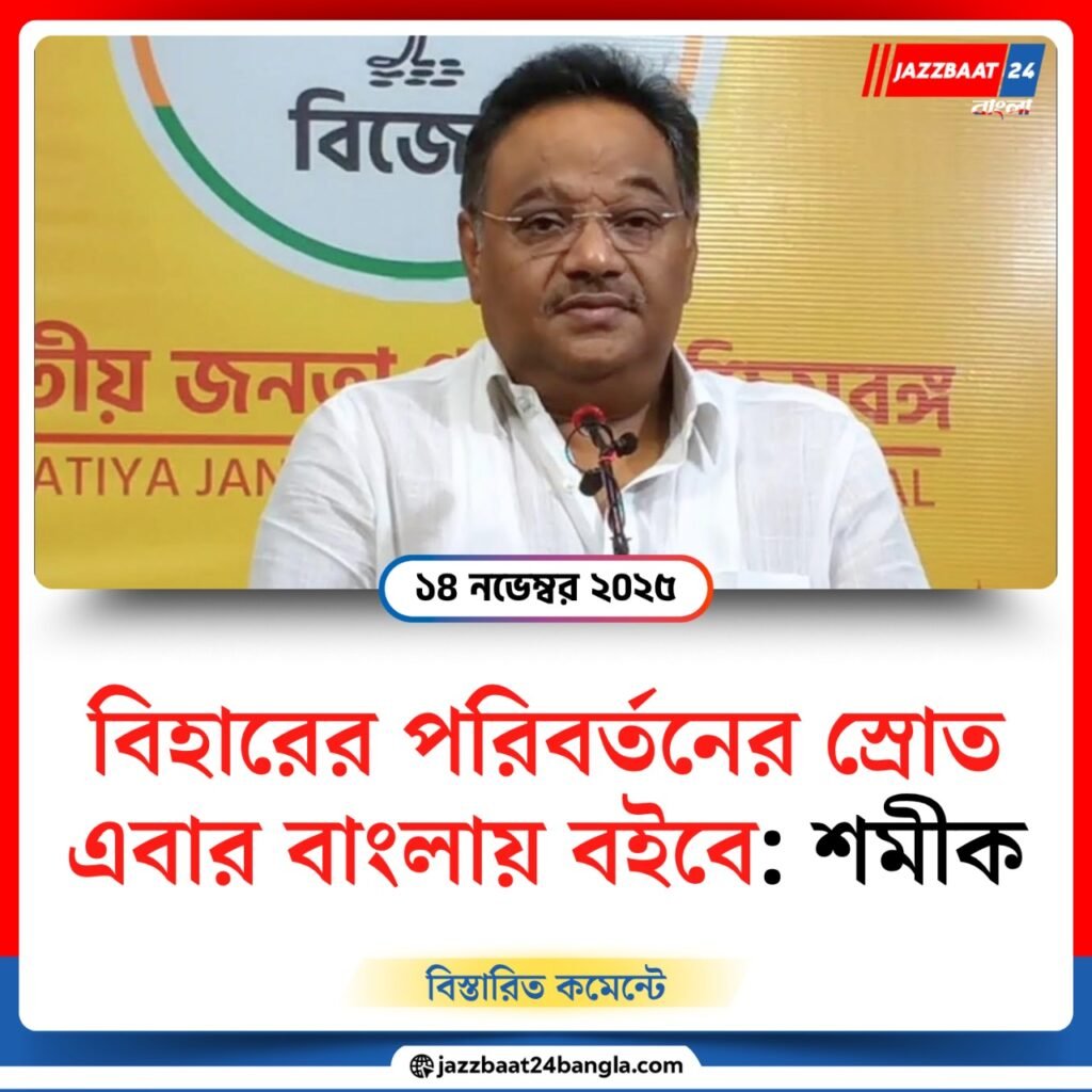 বিহারের নির্বাচন ফলাফলে NDA–র বড় জয়ের পর পূর্ব ভারতের রাজনীতিতে নতুন সুর শোনা যাচ্ছে। এই জয়কে কেন্দ্র করে পশ্চিমবঙ্গে ভোটের আগে বাড়তি উত্তাপ তৈরি হয়েছে। বিজেপি নেতা শমীক ভট্টাচার্য সামাজিক মাধ্যমে ইঙ্গিত দিয়েছেন, বিহারের পরিবর্তনের স্রোত এবার বাংলা রাজনীতিতেও প্রভাব ফেলতে পারে। তাঁর মতে, বিহারের মানুষ দুর্নীতিমুক্ত, স্থিতিশীল ও উন্নয়নমুখী রাজনৈতিক ভবিষ্যৎকে বেছে নিয়ে এক নতুন বার্তা দিয়েছে, যার প্রতিধ্বনি এখন বাংলাতেও স্পষ্ট।