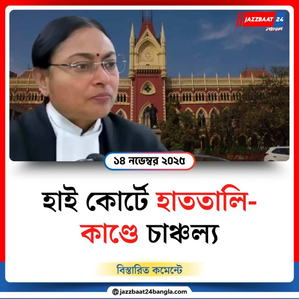 কলকাতা হাই কোর্টে শিক্ষক নিয়োগ সংক্রান্ত SSC মামলার শুনানিতে বুধবার অস্বাভাবিক পরিস্থিতির সৃষ্টি হয়। বিচারপতি অমৃতা সিনহার এজলাসে শুনানি চলাকালীন আবেদনকারীদের একাংশ হঠাৎ হাততালি দিতে শুরু করলে আদালতের শৃঙ্খলা ভেঙে পড়ে। পরিস্থিতিতে ক্ষুব্ধ বিচারপতি সাধারণ মক্কেলদের এজলাস থেকে বেরিয়ে যেতে নির্দেশ দেন। কয়েক মিনিটের মধ্যে আদালত কক্ষ ফাঁকা হয়ে যায়।