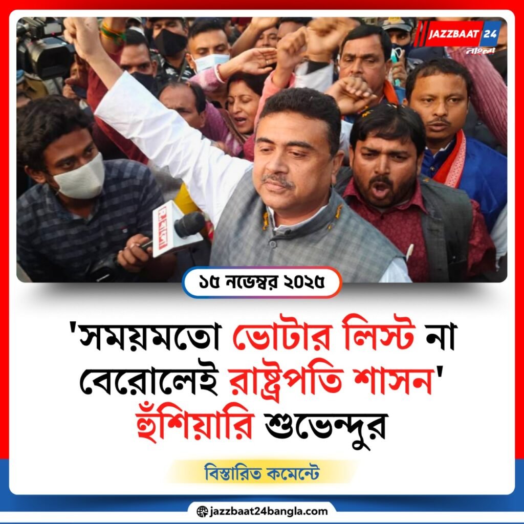 Jazzbaat 24 Bangla > Blog > রাজ্য > ‘সময়মতো ভোটার লিস্ট না বেরোলেই রাষ্ট্রপতি শাসন,’ হুঁশিয়ারি শুভেন্দুর