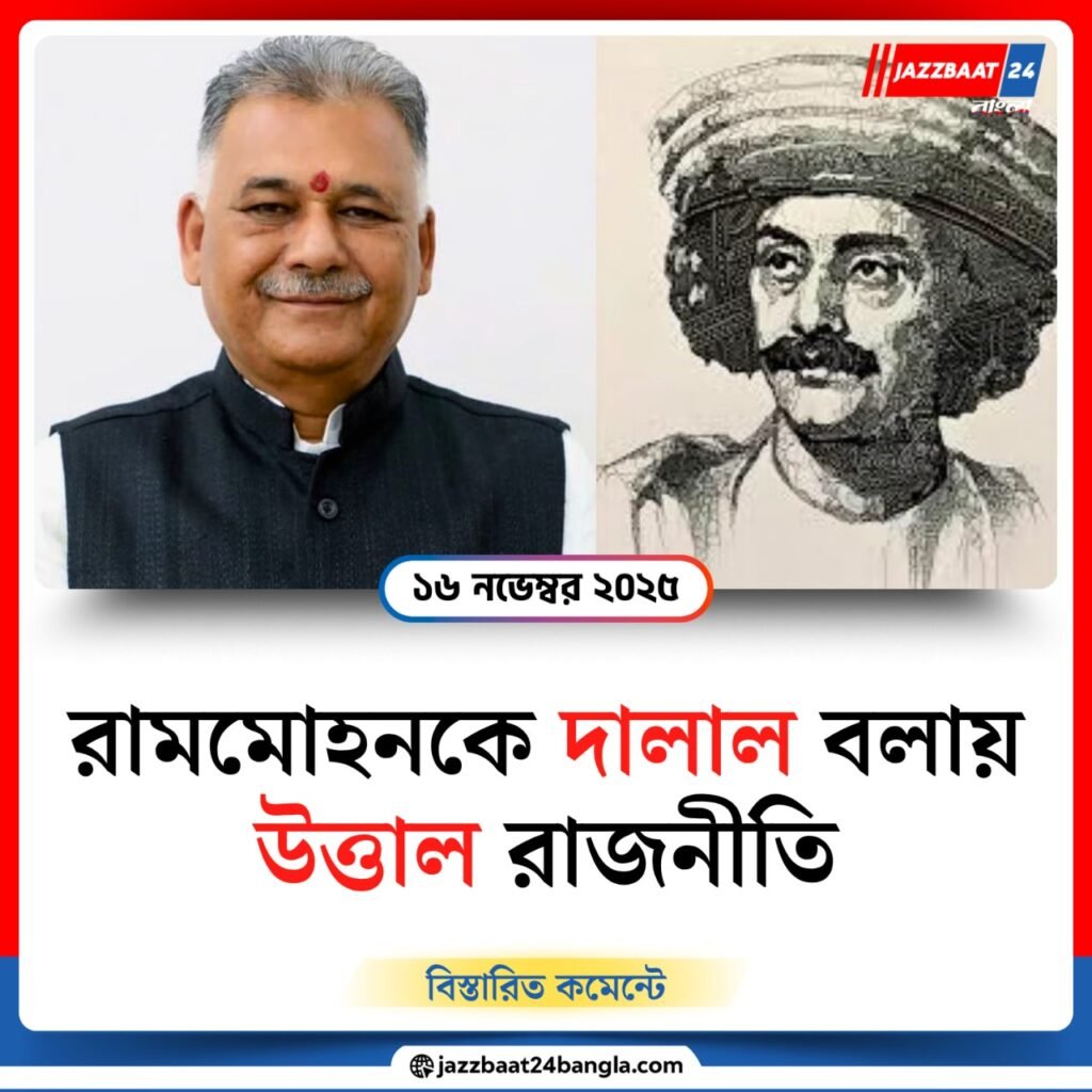 বিতর্কে সরব হয়েছে বাংলার তৃণমূলও। তাদের অভিযোগ, বিজেপি নেতানেত্রী বহুবার বাংলা-বিরোধী মনোভাব দেখিয়েছেন। বিদ্যাসাগরের মূর্তি ভাঙার প্রসঙ্গ ফের সামনে এনে তৃণমূলের বক্তব্য, বাংলার আবেগ ও সংস্কৃতিকে অপমান করার ধারাবাহিক প্রয়াস বিজেপির ডিএনএ-তেই রয়েছে। রামমোহনের মতো ঐতিহাসিক ব্যক্তিত্বকে হেয় করে সাম্প্রদায়িক রাজনীতি উস্কে দেওয়ার চেষ্টা চলছে বলে অভিযোগ।