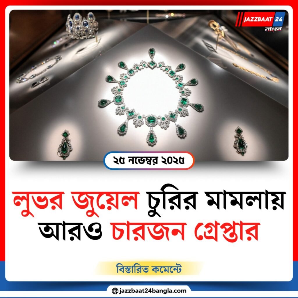 ফ্রান্সের লুভর মিউজিয়ামে গত মাসে ঘটে যাওয়া দুঃসাহসিক জুয়েল চুরির তদন্তে আরও চারজনকে গ্রেপ্তার করেছে প্যারিসের প্রসিকিউটর দফতর। নতুন করে ধরা পড়া দুই পুরুষ ও দুই নারী, যাদের বয়স ৩১ থেকে ৪০ বছরের মধ্যে, সবাই প্যারিসের আশপাশের অঞ্চলের বাসিন্দা। এর আগে একই মামলায় চারজনকে ইতোমধ্যেই অভিযুক্ত করা হয়েছিল।