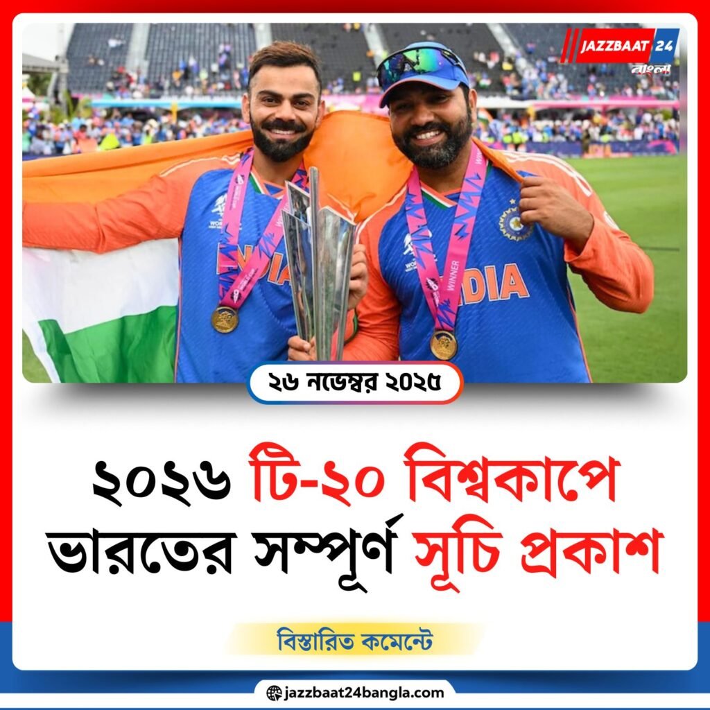 Jazzbaat 24 Bangla > ময়দান > ২০২৬ টি-২০ বিশ্বকাপে ভারতের সম্পূর্ণ সূচি প্রকাশ