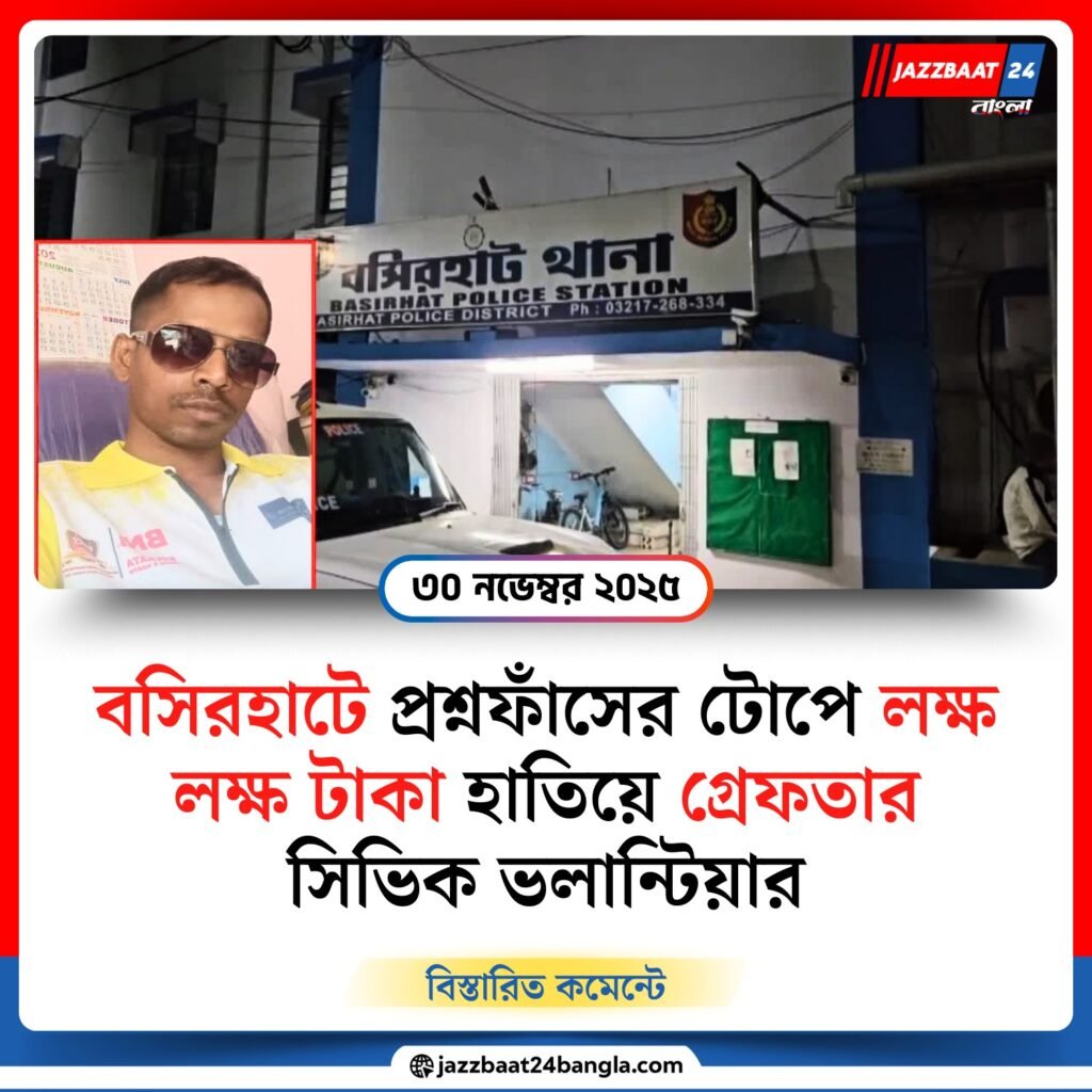 Jazzbaat 24 Bangla > Blog > রাজ্য > বসিরহাটে প্রশ্নফাঁসের টোপে লক্ষ লক্ষ টাকা হাতিয়ে গ্রেফতার সিভিক ভলান্টিয়ার