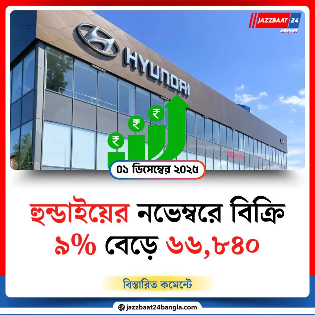 হুন্ডাই মোটর ইন্ডিয়া নভেম্বরে শক্তিশালী বিক্রি নথিভুক্ত করেছে। সোমবার সংস্থাটি জানায়, ২০২৫ সালের নভেম্বর মাসে তাদের মোট বিক্রি দাঁড়িয়েছে ৬৬,৮৪০ ইউনিটে যা গত বছরের একই সময়ের তুলনায় ৯ শতাংশ বেশি। ২০২৪ সালের নভেম্বরে কোম্পানি ৬১,২৫২ ইউনিট ডিলারদের কাছে পাঠিয়েছিল।