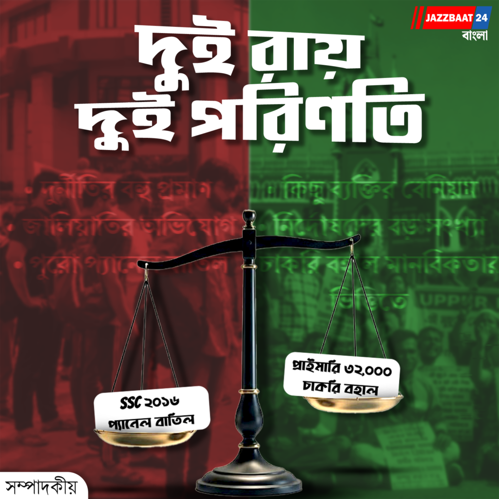 শেষমেশ দুই রায় যেন দুই দর্শন! এসএসসি-তে কঠোর নিরীক্ষা, কঠিন শাস্তি; প্রাইমারিতে নির্দোষের পাশে দাঁড়ানো মানবিক আদালত। রাজ্যের মানুষ তাই এখনো প্রশ্ন তোলে, দুই রায়ের পথে এই পার্থক্য কি কেবল প্রমাণের ভিত্তিতে, নাকি সময়ের দাবি?