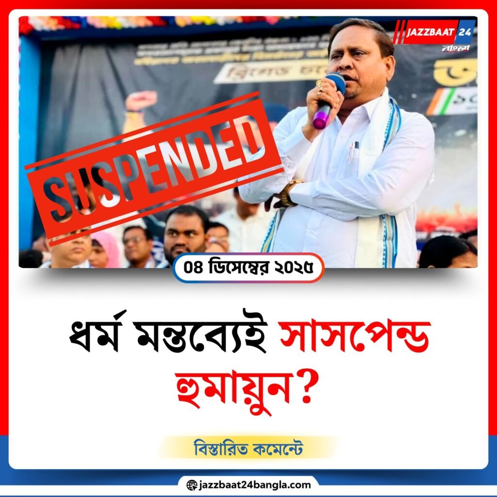 ঘটনার পর রাজনৈতিক মহল জোর গুঞ্জনে সরগরম, এই সাসপেনশন কি হুমায়ুনের রাজনৈতিক ভবিষ্যতের মোড় ঘোরাবে, নাকি তিনি অন্য কোনও শিবিরের দিকে ঝুঁকবেন? আপাতত এই সিদ্ধান্তে তৃণমূল স্পষ্ট করে দিল ধর্মীয় মেরুকরণমূলক মন্তব্য বরদাস্ত করা হবে না, দলীয় শৃঙ্খলাই সর্বাগ্রে।