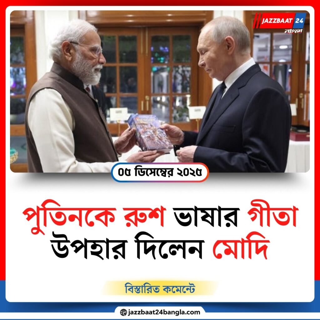 ভারত-রাশিয়া কূটনৈতিক সম্পর্কে আরও এক উজ্জ্বল প্রতীক যোগ হল প্রধানমন্ত্রী নরেন্দ্র মোদি ও ভ্লাদিমির পুতিনের বৈঠকে। নয়াদিল্লিতে দুই দিনের সফরে এসে রাশিয়ার প্রেসিডেন্টকে স্বাগত জানানোর মুহূর্ত থেকেই স্পষ্ট ছিল, দুই দেশের সম্পর্ক শুধু কৌশলগত নয়, আবেগ ও আস্থার স্তম্ভেও দাঁড়িয়ে আছে। সেই বার্তাকেই আরও দৃঢ় করল মোদির বিশেষ উপহার, রুশ ভাষায় ছাপা শ্রীমদ্ভগবদ্গীতা।