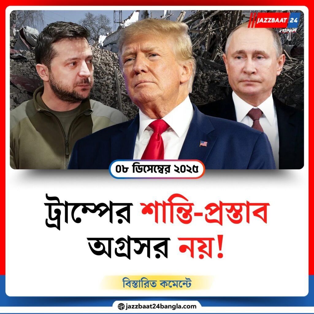 ট্রাম্প দাবি করেছেন, পুতিনের সঙ্গে সাম্প্রতিক বৈঠক ‘ইতিবাচক পরিবেশে’ হয়েছে। তাঁর বক্তব্য, রাশিয়া যুদ্ধ শেষ করতে আগ্রহী বলে ইঙ্গিত দিয়েছে। কয়েকদিন আগেই মার্কিন দূত স্টিভ উইটকফ এবং জ্যারেড কুশনার মস্কোয় পুতিনের সঙ্গে আলোচনায় বসেন। মার্কিন প্রেসিডেন্টের ভাষায়, “রাশিয়ার সাড়া আশাব্যঞ্জক। তবে ইউক্রেনের প্রেসিডেন্ট জেলেনস্কি এখনও প্রস্তাবটি পূর্ণাঙ্গভাবে খতিয়ে দেখেননি।”