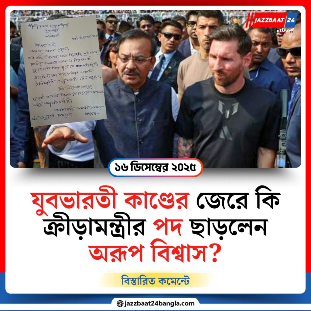 সম্প্রতি যুবভারতী স্টেডিয়ামে নিরাপত্তা ও ব্যবস্থাপনা ঘিরে একাধিক প্রশ্ন ওঠে। দর্শক নিয়ন্ত্রণ, মাঠে নিষিদ্ধ সামগ্রী প্রবেশ এবং প্রশাসনিক গাফিলতি নিয়ে তৈরি হয় বিতর্ক। সেই ঘটনার পর থেকেই ক্রীড়া দফতরের ভূমিকা নিয়ে চাপ বাড়ছিল বলে সূত্রের দাবি। শেষ পর্যন্ত তারই দায় স্বীকার করে নৈতিকতার দৃষ্টান্ত স্থাপন করলেন অরূপ বিশ্বাস, এমন ব্যাখ্যাও উঠে আসছে।