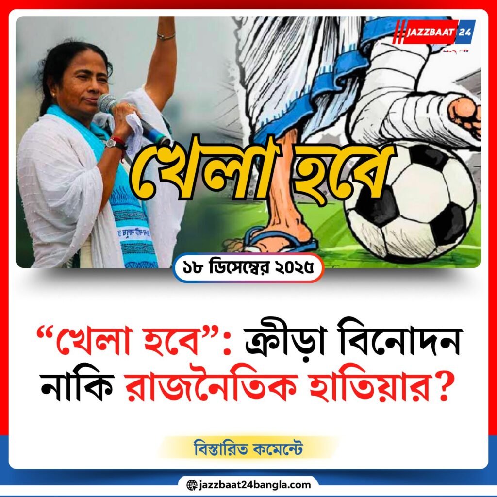 আজকের দিনে দাঁড়িয়ে ‘খেলা হবে’ শব্দবন্ধটি কেবল ফুটবল মাঠের উন্মাদনা নয়, বরং রাজনীতির ময়দানে এক ধারালো স্লোগান। মাঠের ঘাস থেকে রাজনীতির রাজপথ—ক্রীড়া আজ আর নিছক বিনোদনের আঙিনায় নেই, তা হয়ে উঠেছে ক্ষমতার দাবার বোর্ডের এক মোক্ষম ঘুঁটি। প্রশ্ন জাগে, রাজনীতির মঞ্চে ক্রীড়া কি শুধুই বিনোদন? নাকি বিনোদনের রঙিন মোড়কে এটি জনমানসকে মোহগ্রস্ত করার এক সুপরিকল্পিত রাজনৈতিক অস্ত্র?